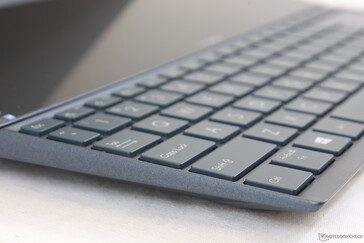 De type-ervaring blijft identiek aan die van de UX481, inclusief de ondiepe reisafstand en de relatief stevige terugkoppeling. De upfront positionering werkt goed op een ruim bureaublad, maar is zeker niet zo comfortabel als een traditionele laptop wanneer de werkruimte krap is, zoals in treinen of vliegtuigen