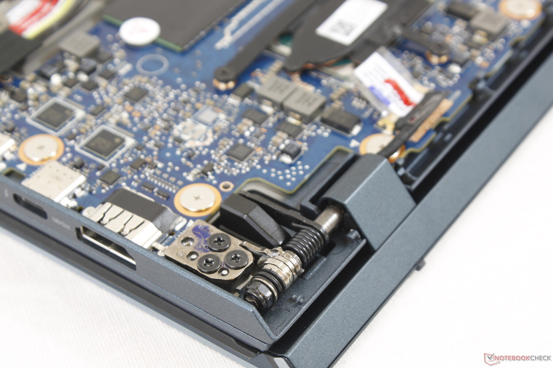 Het bodempaneel springt er gemakkelijk af als je een T5 Torx sleutel bij de hand hebt. Er zitten gelukkig geen schroeven verborgen onder de rubberen voetjes, zoals bij sommige HP laptops het geval is. Helaas is alleen de M.2 SSD te upgraden, omdat zowel de WLAN- als de RAM-modules gesoldeerd zijn.