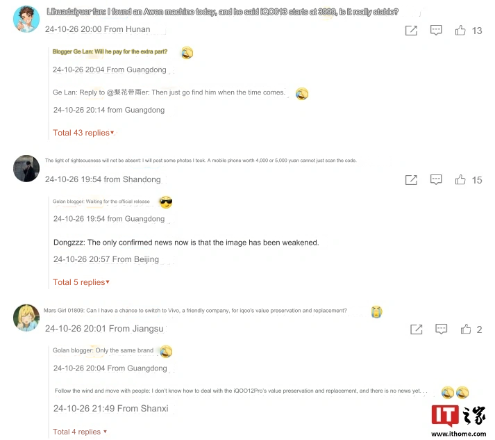 Toen Digital Chat Station dat meldde, dachten veel Weibo-gebruikers dat het de iQoo 13 zou zijn. De Weibo-tipper verduidelijkte later echter dat het een andere telefoon was.