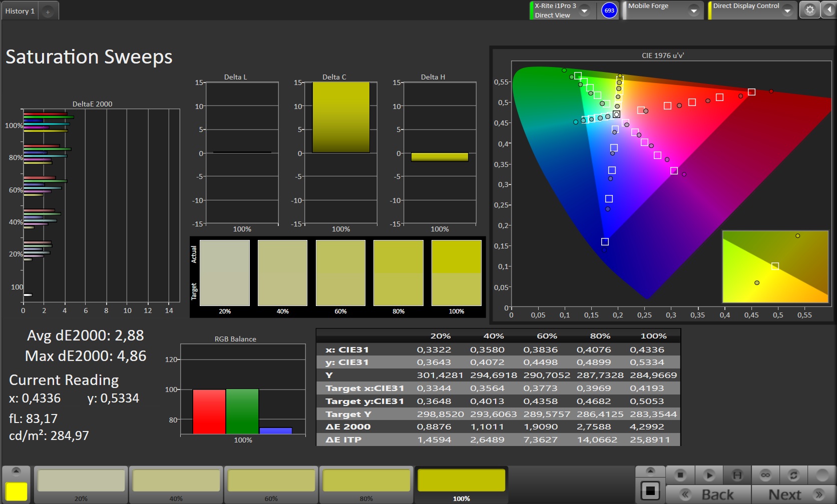 (±) | lineariteit van de middentonen is gemiddeld (8% delta ten opzichte van de vorige frequentie)