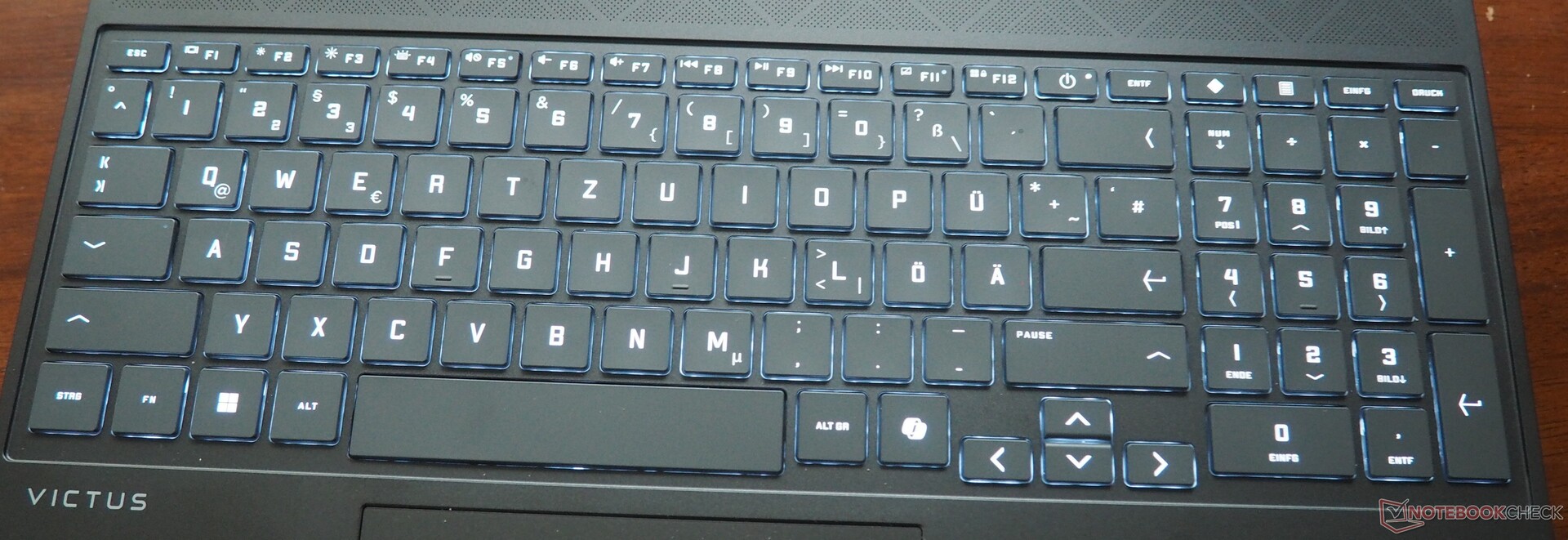 De invoerapparaten zijn relatief goed, zonder enthousiasme op te wekken. Het toetsenbord gebruikt de volledige breedte van de behuizing en is voorzien van een volledig numeriek toetsenbord en witte achtergrondverlichting met één niveau. Wij zouden de indeling als enigszins verwarrend omschrijven, vooral wat betreft de rechterbovenhoek en de positie van de aan/uit-knop, evenals de toetsen "Invoegen", "Print scherm" en "Wissen". Sommige gebruikers zouden ook grotere pijlen willen.