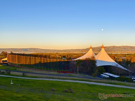 Op Apple was de belangrijkste attractie voor mij de cappuccino met het Apple logo, terwijl het bij Google absoluut de omgeving was die baadde in de kleuren van de geleidelijke zonsondergang, daarna aangevuld met een helder schijnende volle maan. Zelfs na zonsondergang was het gebied rond het Google Visitor Center interessant, zoals de Orb, waarin ik de volle maan kon vastleggen.