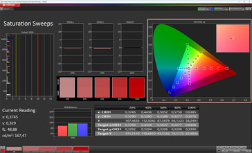 Hoewel de fabrikant een piekhelderheid van 4.000 cd/m² claimt, blijven onze metingen ver achter - beduidend lager zelfs. Het 6,78 inch OLED-paneel blijft veel zwakker in de praktijk, waarbij onze APL18 test 1.289 cd/m² liet zien en het afspelen van video's 1.295 cd/m² bereikte. Dat gezegd hebbende, is de helderheid nog steeds voldoende voor het leveren van goede HDR-effecten.