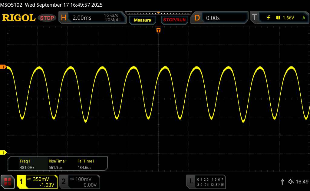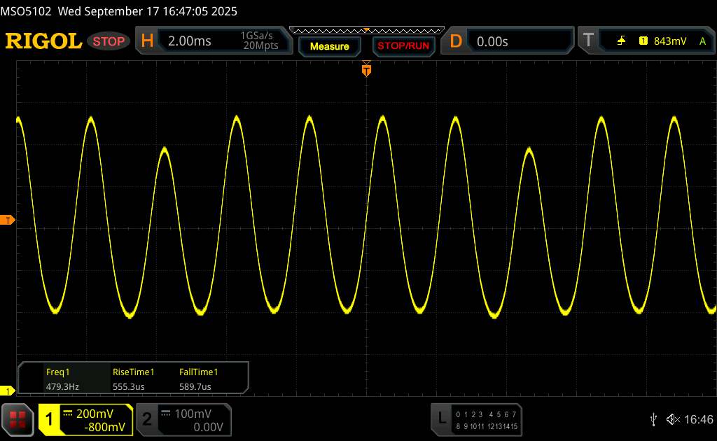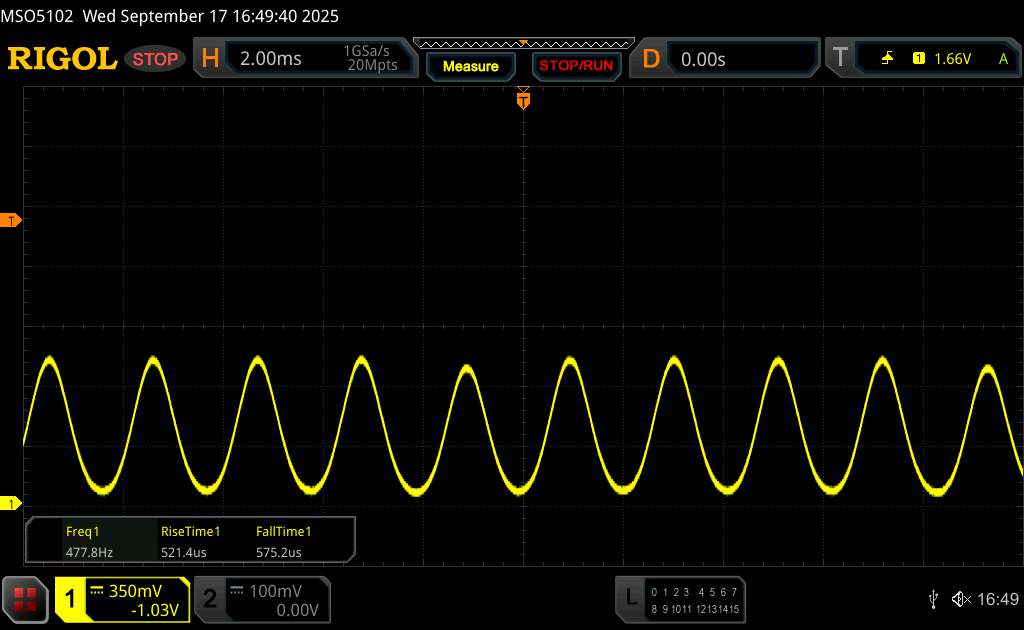 (+) | de hoge tonen zijn lineair (3.9% delta naar de vorige frequentie)