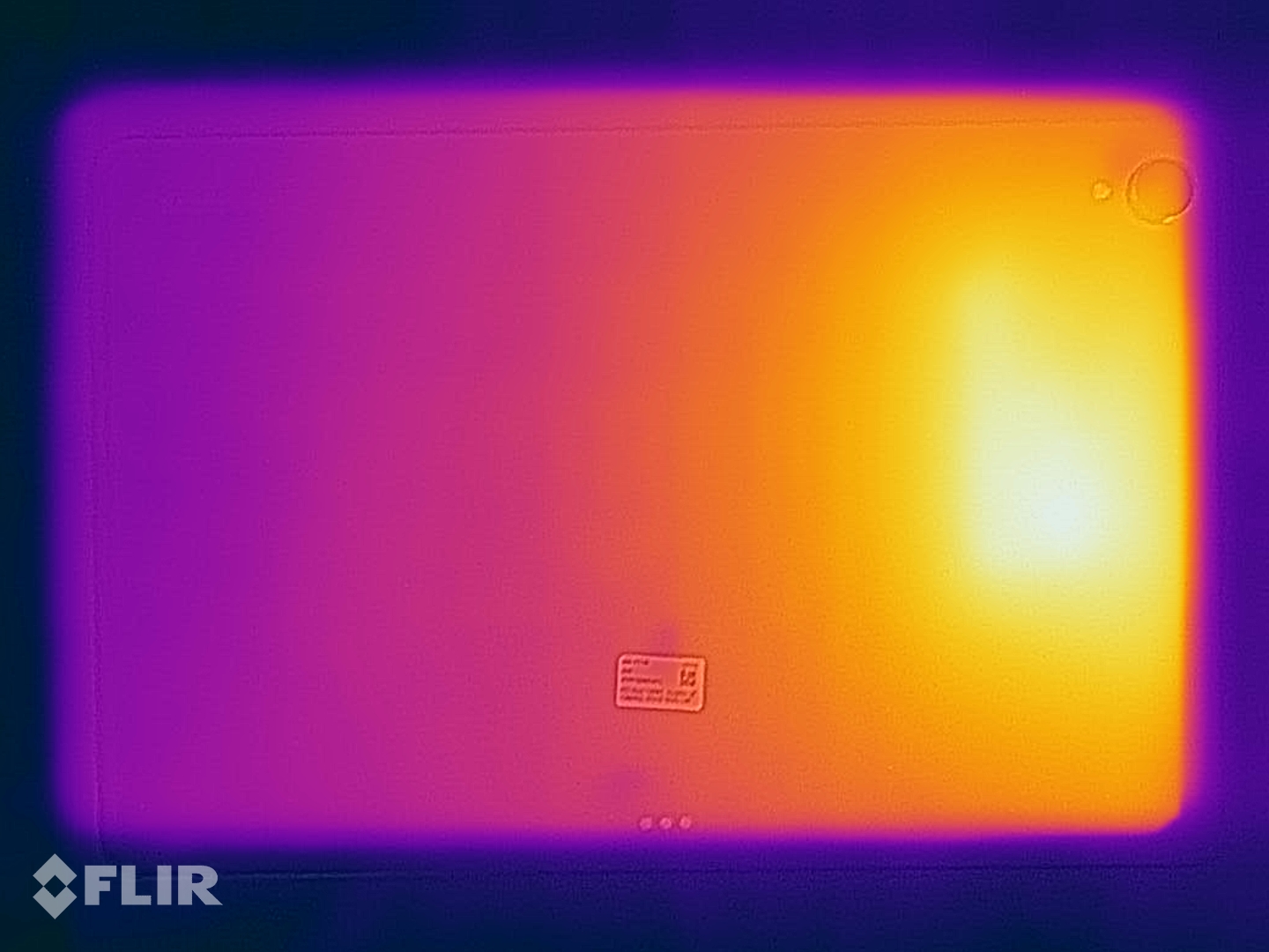 (-) De maximumtemperatuur aan de bovenzijde bedraagt 47.1 °C / 117 F, vergeleken met het gemiddelde van 33.7 °C / 93 F, variërend van 20.7 tot 53.2 °C voor de klasse Tablet.