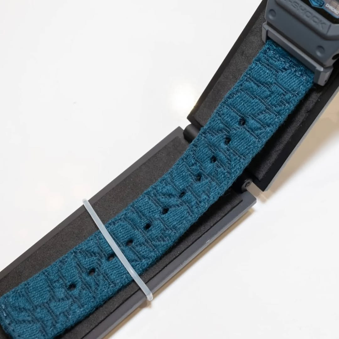 Het ontwerp draait helemaal om duurzaamheid, wat ook blijkt uit het "Untangle It"-initiatief dat bij het horloge hoort. De bezel en kast zijn gemaakt van harsen op biologische basis, terwijl de band bestaat uit een stoffen kruisband van gerecyclede visnetten. Close-up foto's onthullen een donkere marineblauwe of groenblauwe stof met een repetitief geometrisch patroon met textuur dat op het oceaanoppervlak moet lijken. Deze materiaalkeuze is heel anders dan de standaard harsbandjes die op de meeste 5600-modellen te vinden zijn. Het zal gemakkelijk een van de grootste verkoopargumenten van dit horloge zijn, ware het niet dat het MIP-display er ook bij zit.