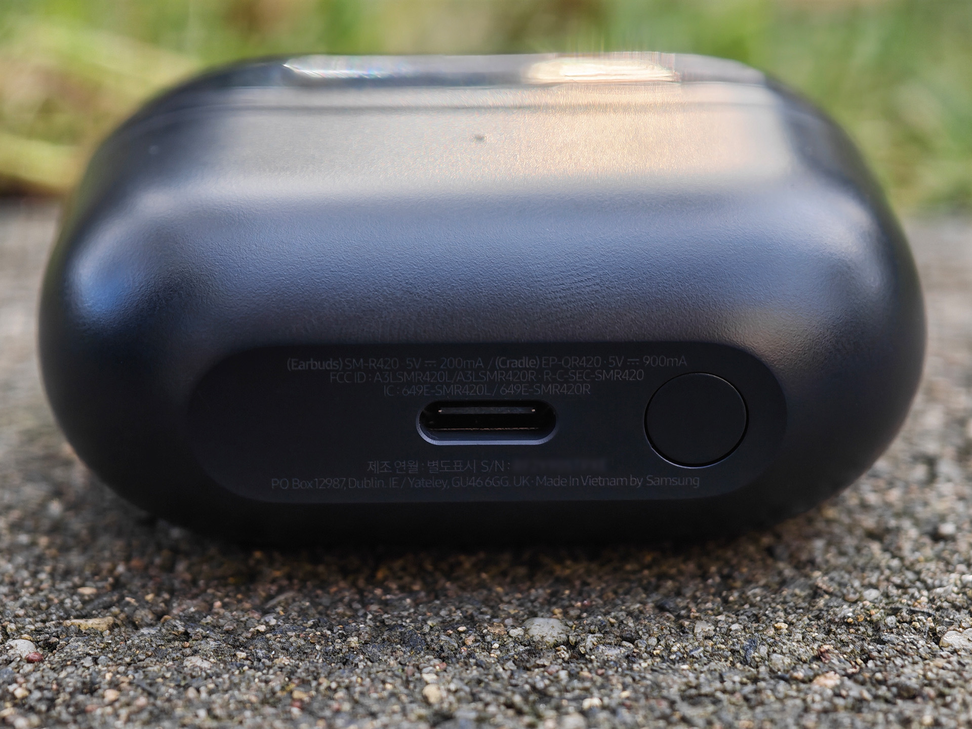 Een oplaadbeurt van 10 minuten via de USB-C poort op het etui levert ongeveer 60 minuten afspeeltijd op, terwijl een volledige oplaadbeurt iets meer dan anderhalf uur duurt. Draadloos opladen wordt niet ondersteund.