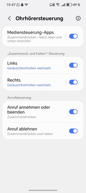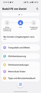 De aanraakbediening op de steel van de Samsung Galaxy Buds3 FE zorgt voor precieze bediening: tik voor afspelen/pauzeren, veeg voor volume en houd vast om de ANC-modus in te schakelen. Deze bewegingen zijn aanpasbaar in de Galaxy Wearable app. De app biedt ook EQ presets, tip fit tests, firmware-updates en toegang tot Galaxy AI tools zoals Interpreter Mode. Naadloos schakelen tussen Galaxy apparaten werkt vlekkeloos, maar multipoint naar niet-Samsung apparaten ontbreekt.
