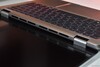 Dell gebruikt twee neerklapbare scharnieren om het scherm met het basisstation te verbinden. Hierdoor kan het scherm tot maximaal 180 graden worden geopend en er is niet veel wiebel, maar het is niet mogelijk om het scherm met één hand te openen.