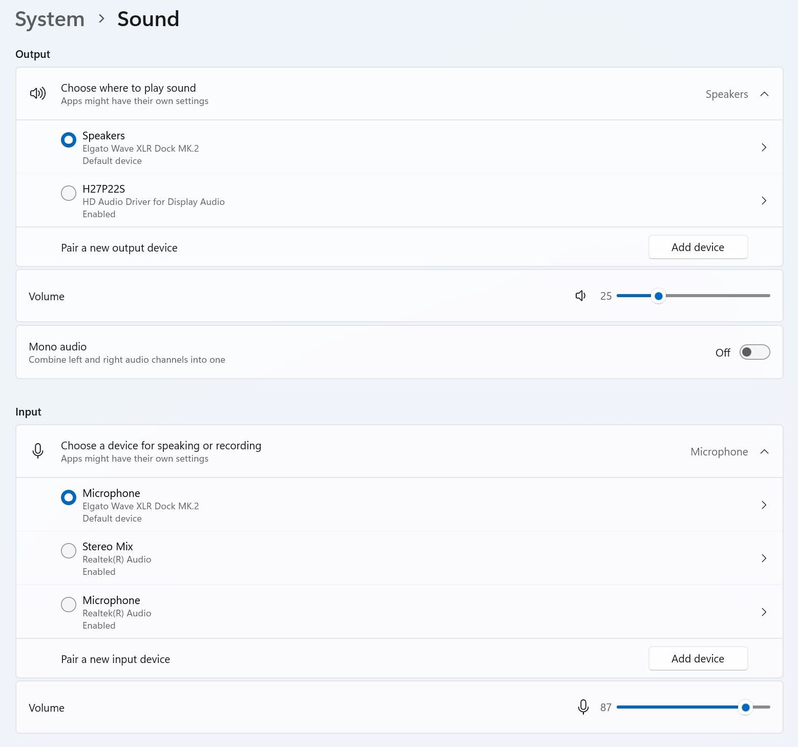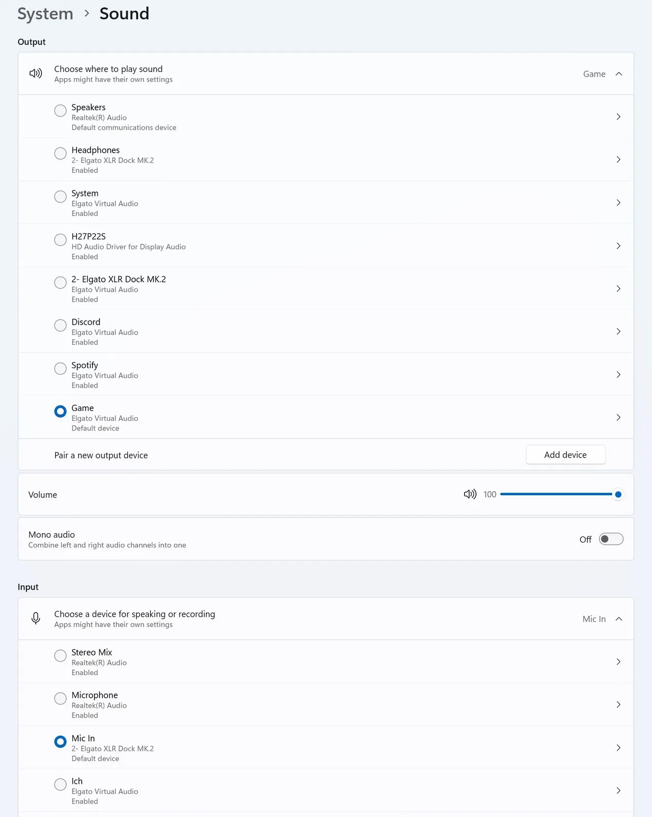 Deze mixen verschijnen als invoerapparaten in het systeem en kunnen gemakkelijk worden geselecteerd en omgeschakeld binnen apps zoals OBS. Hierdoor kunt u bijvoorbeeld direct in OBS schakelen tussen een stream-ingangsmix en een chatmix.