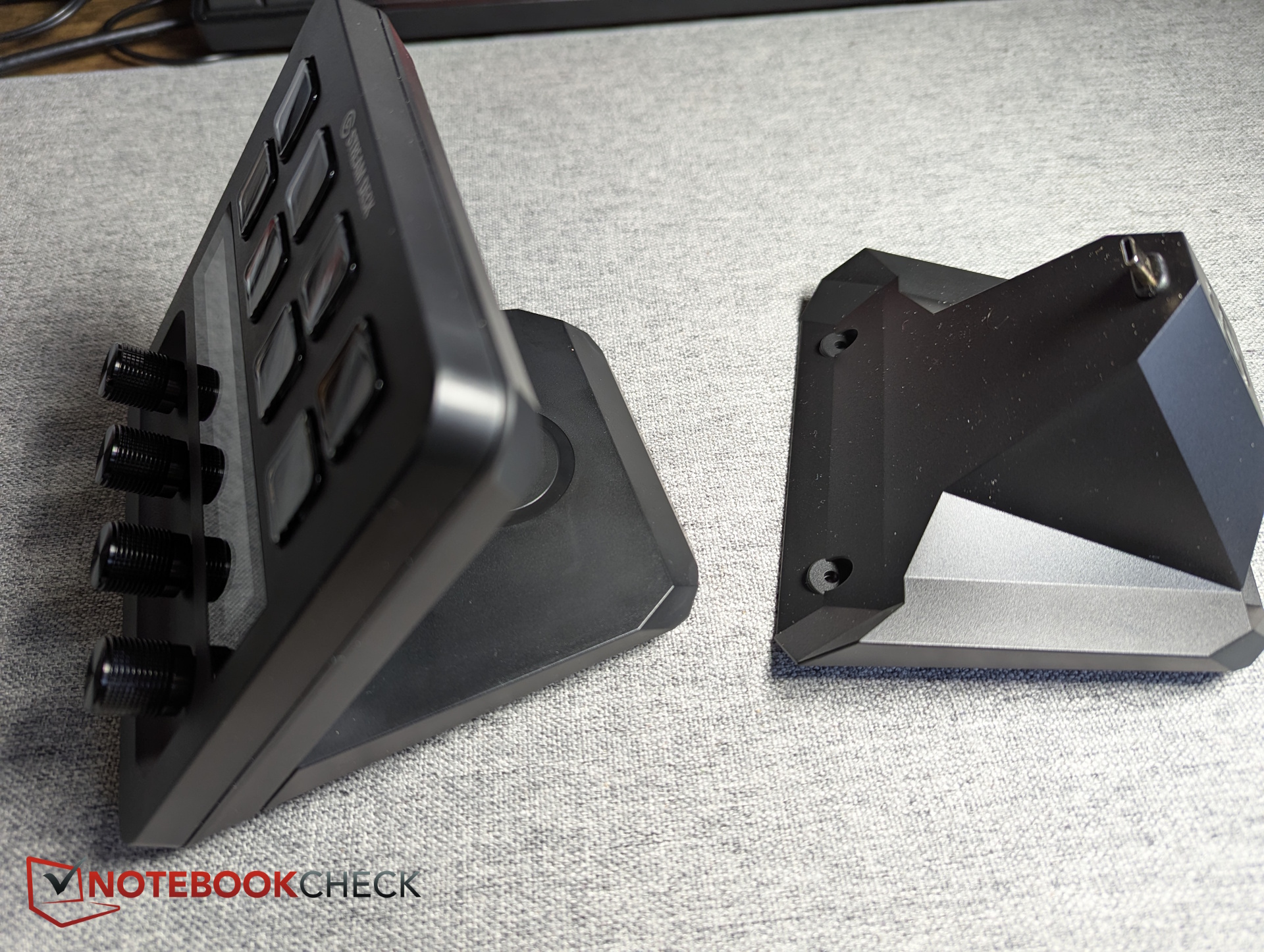 Dus de eerste stap is het verwisselen van de standaard basisplaat van de Stream Deck+ voor de nieuwe XLR Dock MK.2. Om dit te doen, verwijderen we twee schroeven, sluiten we het dock aan op de USB-C poort van de Stream Deck+ en schroeven we alles weer vast.