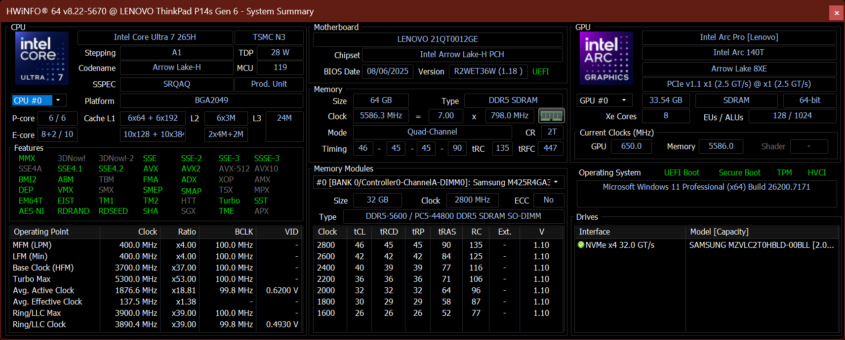 De ThinkPad P14s Gen 5 Intel van vorig jaar was al een geweldige aanvulling op de line-up. De nieuwe Lenovo ThinkPad P14s Gen 6 Intel is nog beter, vooral dankzij Intels nieuwere Arrow Lake CPU's, maar ook dankzij de nieuwere Nvidia RTX Pro Blackwell GPU's. De prestaties zijn verbeterd, maar ook de efficiëntie is verbeterd: De prestaties zijn verbeterd, maar de efficiëntie ook, wat betekent dat de laptops koeler en stiller werken en dat de batterij langer meegaat.