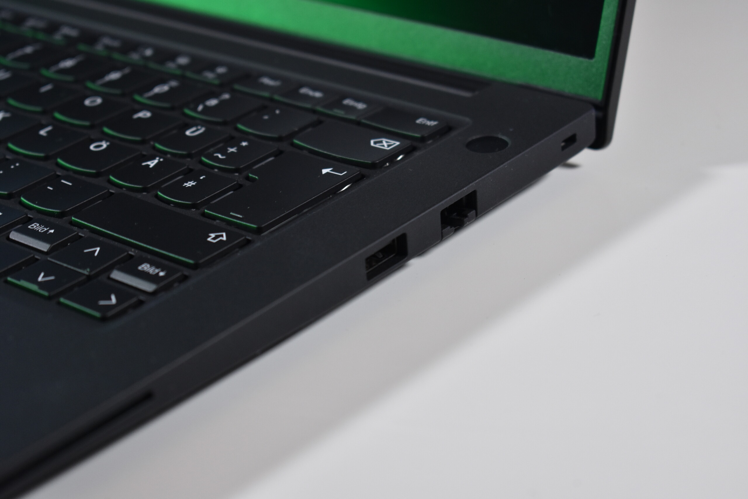 Aangezien de P14s Gen 6 Intel in de zakelijke categorie valt, heeft deze meerdere beveiligingsfuncties die verder gaan dan de basisfuncties, zoals een vingerafdruksensor of IR-webcam. Deze omvatten een Smartcard-lezer, een fysieke sluiter voor de webcam en een Kensington-slot voor diefstalbeveiliging.