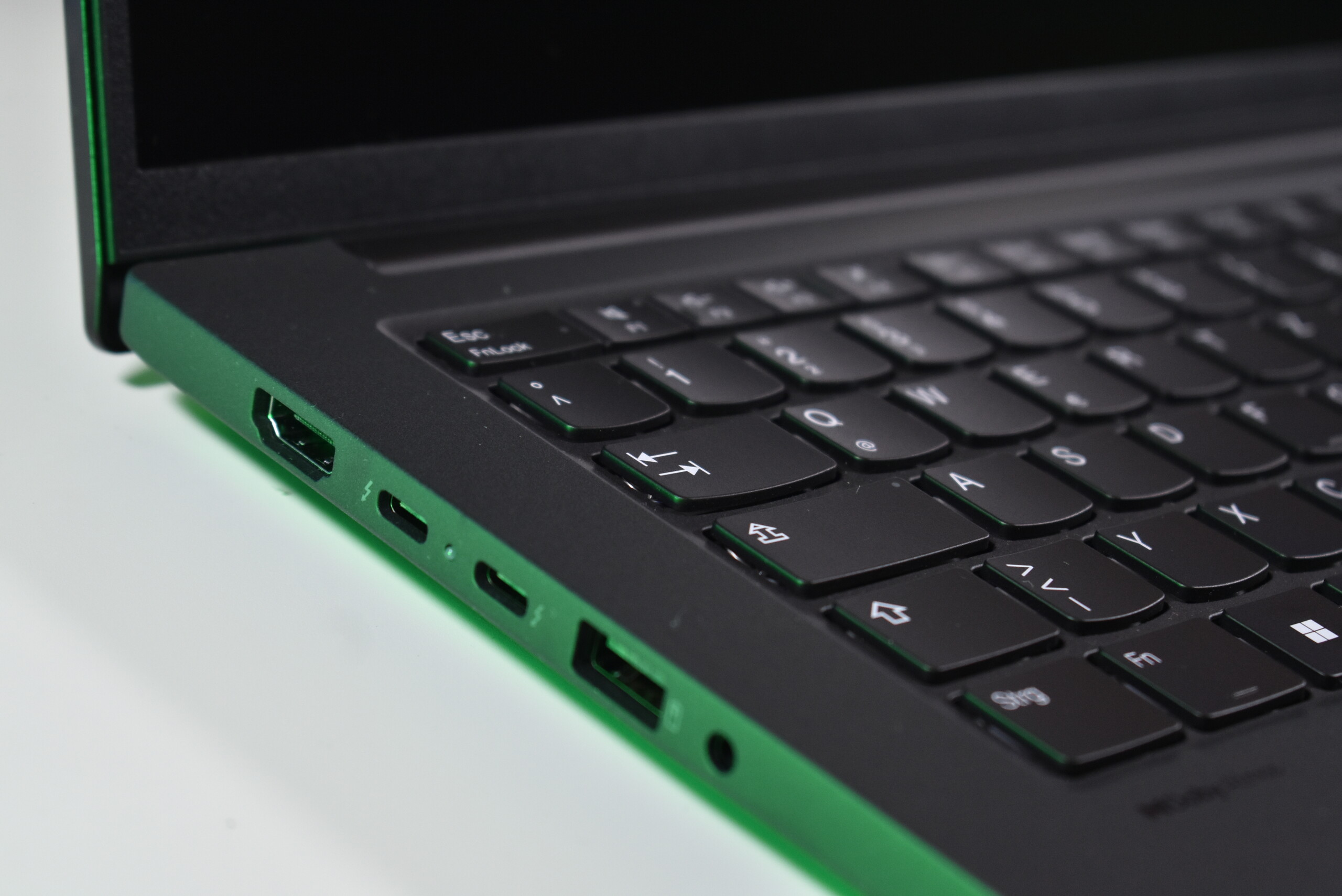 Lenovo heeft de poortselectie niet veranderd ten opzichte van de oudere P14s Gen 5 Intel - het is ook identiek aan de P14s Gen 6 AMDondanks de grotere behuizing van de P14s G6 Intel. We missen zeker een SD-kaartsleuf, en een derde Thunderbolt 4 / USB-C poort aan de rechterkant van het chassis zou ook op prijs worden gesteld.