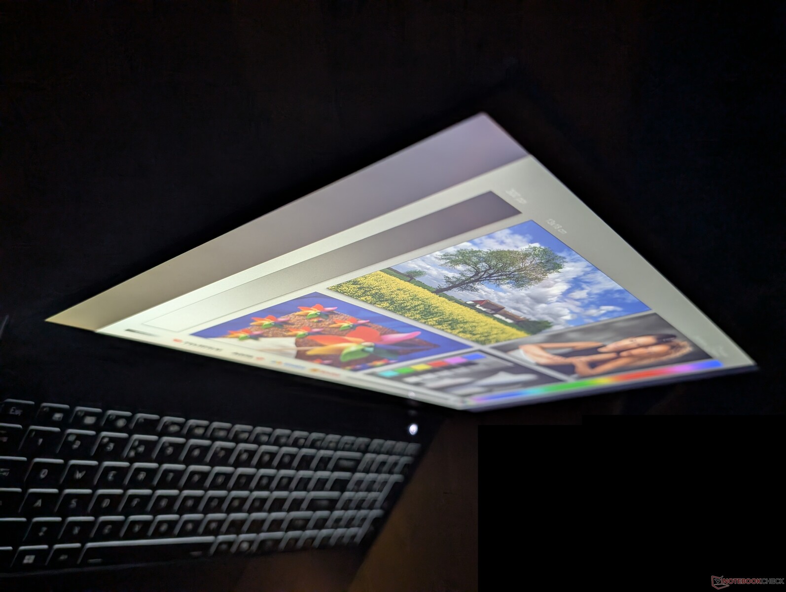 Het IPS-beeldscherm is zo eenvoudig als het maar zijn kan met ~60 procent sRGB-kleuren, 60 Hz vernieuwingsfrequentie en een middelmatig 255-nit maximaal helderheidsniveau. Modernere IPS-schermen, zoals die op de MSI Summit A16 AI Plusbieden enorm superieure kleuren, snellere vernieuwingsfrequenties en een helderder achtergrondlicht voor een merkbaar betere beeldkwaliteit en zichtbaarheid buitenshuis.