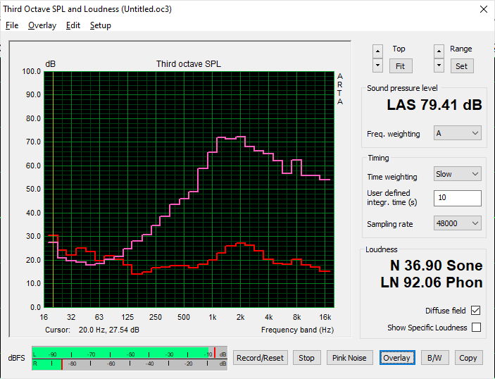 (+) | het totale geluid is lineair (4.6% verschil met de mediaan)