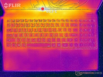 (+) Bij onbelast gebruik bedraagt de gemiddelde temperatuur voor de bovenzijde 22.8 °C / 73 F, vergeleken met het apparaatgemiddelde van 29.5 °C / 85 F.