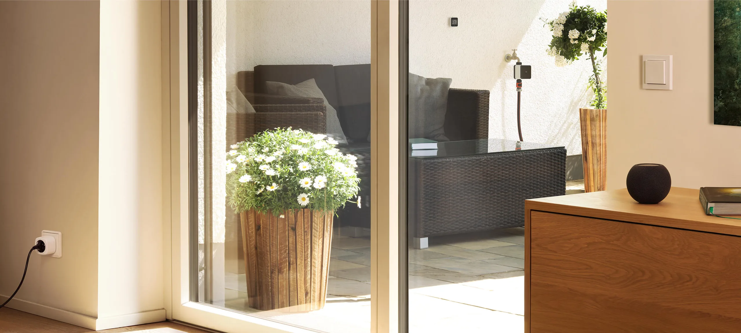 Terwijl Eve Energy, een slimme stekker, gekenmerkt wordt door flexibiliteit, biedt Eve Energy Outlet een strakke en permanente oplossing."