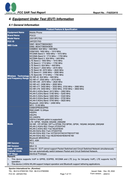 Volgens verschillende IMEI database resultaten, maakt de 23013PC75G deel uit van de POCO F5 serie. Het is echter nog niet duidelijk of 23013PC75G betrekking heeft op de POCO F5 of de POCO F5 Pro. Hoewel MySmartPrice een resultaat heeft getoond dat 23013PC75G linkt aan de POCO F5 Pro, geven IMEI checkers allemaal 23013PC75G terug als de POCO F5. Overigens, Xiaomiui suggereerde een paar maanden geleden dat dit laatste het geval zou zijn. Hoe dan ook, de FCC meldt dat de 23013PC75G MIUI 14 draait, twee SIM-slots heeft en dual-SIM standby ondersteunt.