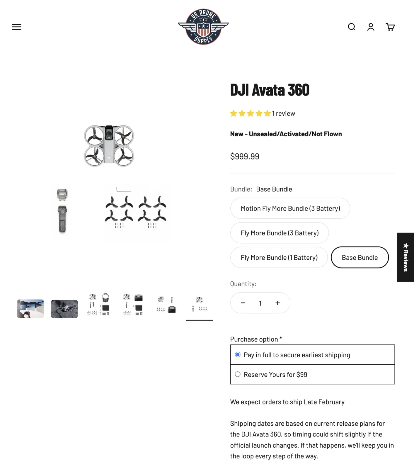 Houd er rekening mee dat de kans groot is dat US Drone Supply deze prijzen enigszins heeft opgeblazen. Hoe dan ook, de verkoper geeft aan dat pre-orders eind februari verzonden zouden moeten worden. Met andere woorden, de officiële release van de Avata 360 zou binnen een paar weken moeten plaatsvinden. Gebaseerd op recente prestaties zal China de eerste markt zijn waar de Avata 360 verkrijgbaar zal zijn. Al met al verwachten we dat DJI binnen een week of zo zal beginnen met het teasen van de Chinese release van de Avata 360.