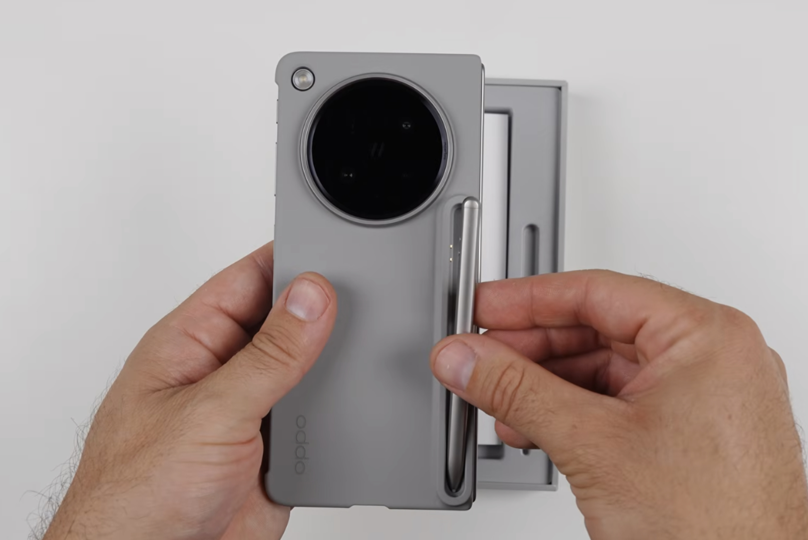 Bovendien heeft dezelfde YouTuber de AI Pen Kit van Oppo uitgelicht. De pen heeft een eigen etui, wordt opgeladen wanneer deze in het bijbehorende etui wordt geplaatst en wordt geleverd met extra penpunten. Beide YouTubers hebben ook de displayvouw van de Find N6 laten zien.