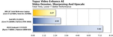 De content creation benchmark suite gebruikt door Forbes omvatte de Topaz Video Enhance AI, Blackmagic's RAW Speed Test voor 8K video rendering, en Adobe's Premiere Pro. Intels Arc A370M wist de eerste plaats te behalen in de Topaz en Blackmagic tests, en versloeg daarmee zelfs Nvidia's RTX 3050. Voor de Adobe test eindigde de Intel chip op de tweede plaats na de Nvidia GPU, maar hij was meer dan 100% sneller vergeleken met AMD's Radeon 680M.