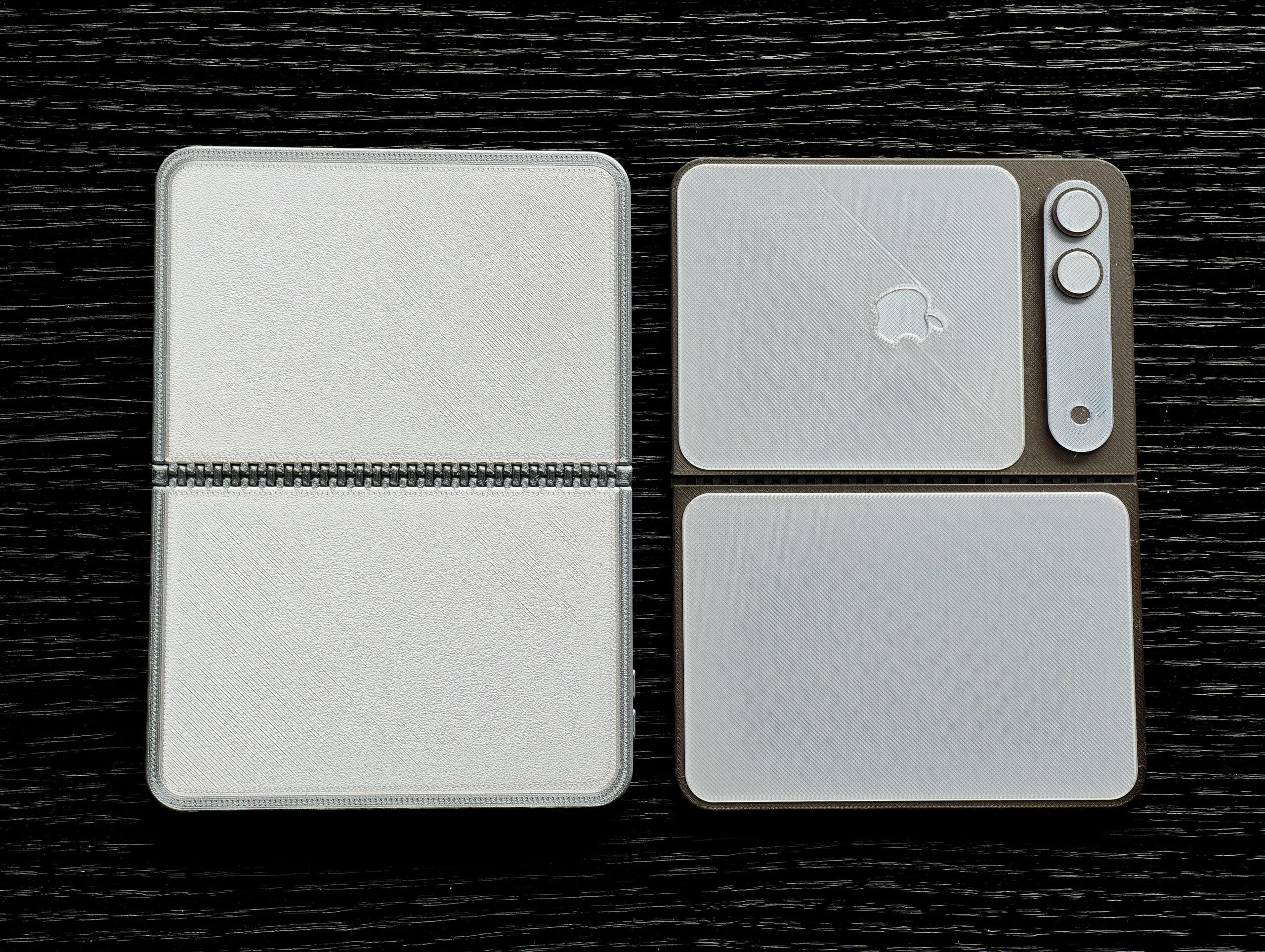 Na de verschillende renderafbeeldingen heeft de Chinese leaker Digital Chat Station nu net https://www.weibo.com/6048569942/Qo971kdBf hands-on beelden gepubliceerd van zeer vroege dummy-modellen, die bedoeld zijn om een veel concreter beeld te geven van het ongewone en relatief zeer compacte formaat van de eerste Apple opvouwbare. Volgens de informatie tot nu toe is het een zeer compacte, vrij vierkant uitziende iPhone wanneer deze is opgevouwen, met een 5,3 inch coverdisplay. De uitgelekte CAD-modellen meten 120,6 x 83,8 x 9,6 mm en zijn daarmee kleiner in hoogte dan Apple's laatste mini-iPhone, de iPhone 13 Minimaar natuurlijk iets groter in de breedte en dikte.