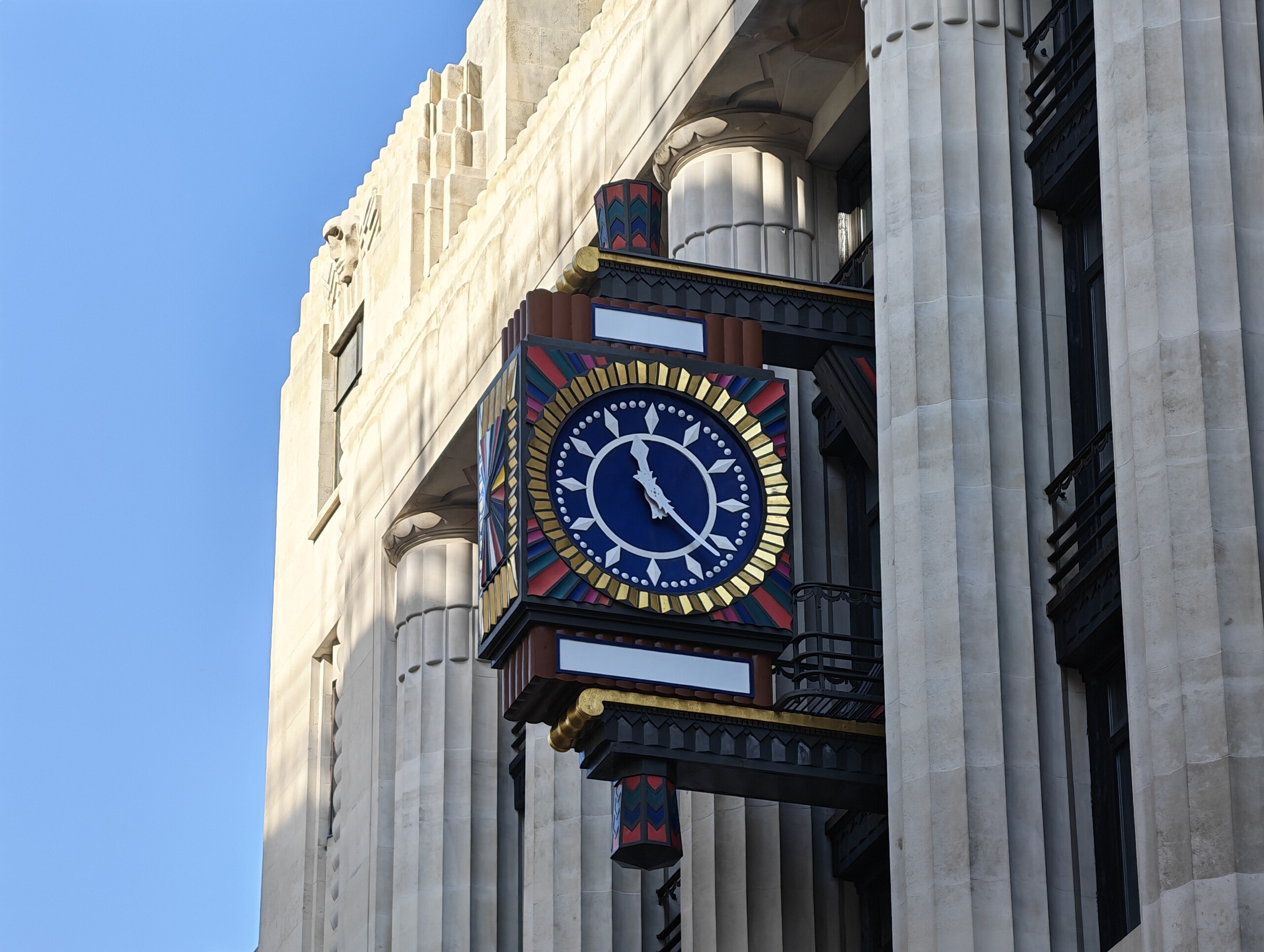 Een voorbeeld is de klok in St Dunstan-in-the-West, een kerk in Fleet Street, waar twee reuzen met knuppels op de klokken slaan om de tijd aan te kondigen. In de foto van de reuzen laat de Honor telefoon dit keer meer detail zien en voegt ook meer contrast toe, waardoor het gemakkelijker te zien is in de donkere gebieden.