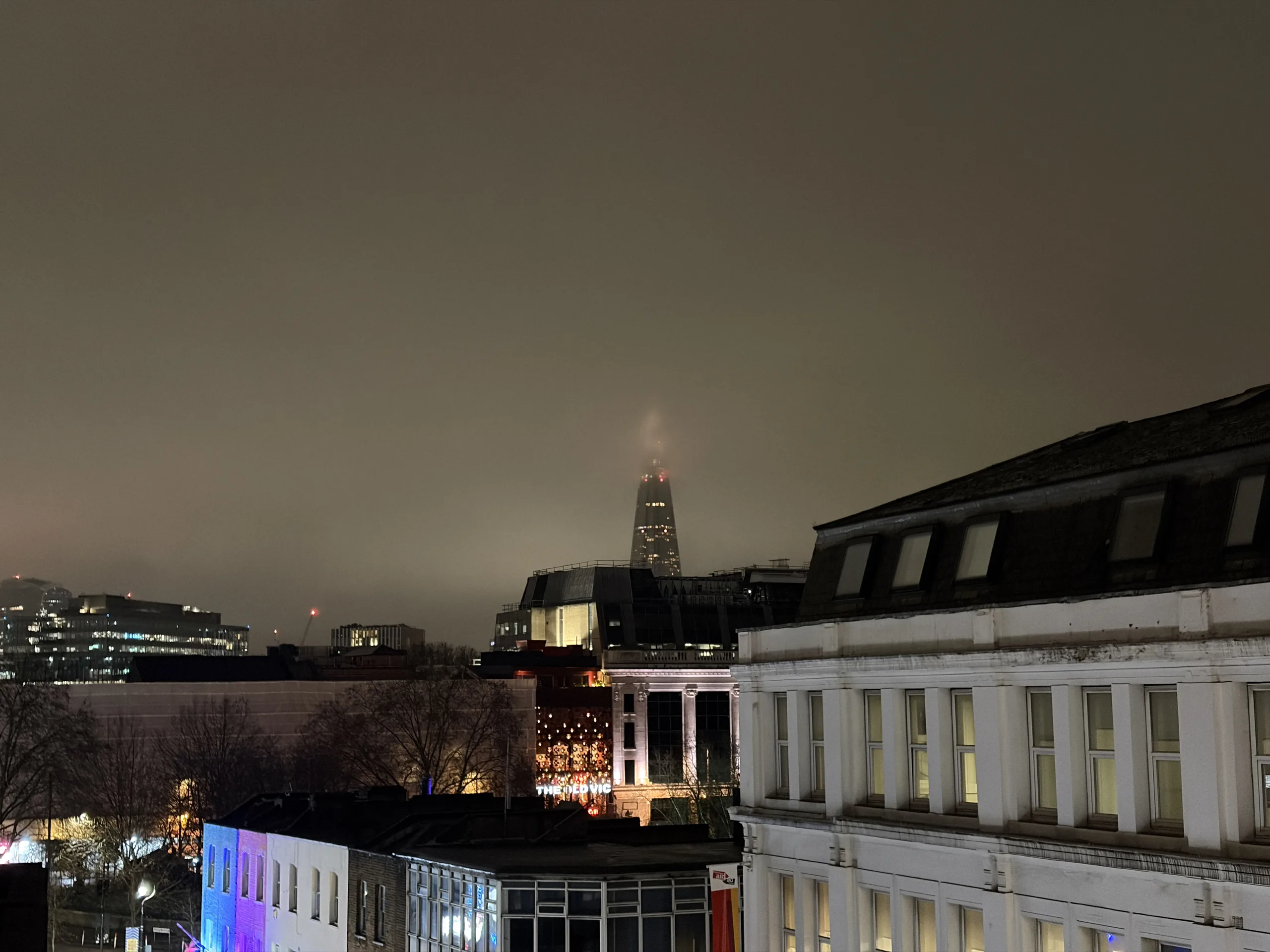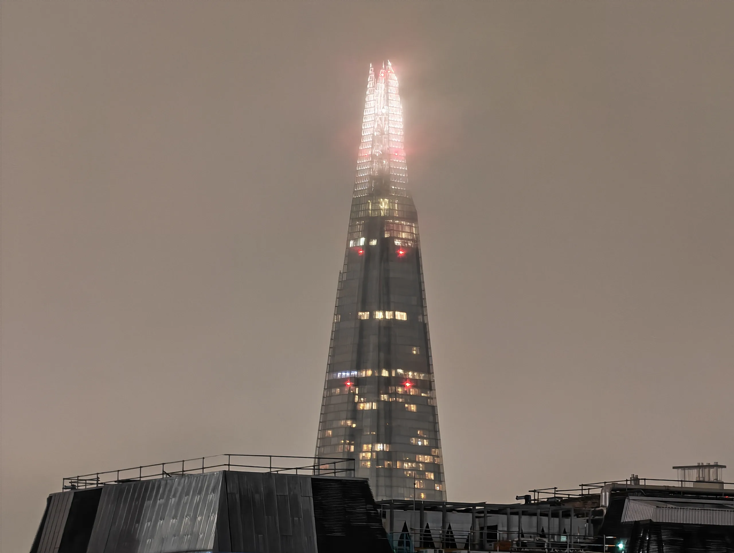 In de verte komt The Shard - een van de meest bijzondere wolkenkrabbers van Londen - in beeld. We gebruiken het om de zoomcapaciteiten van de twee smartphones te vergelijken.