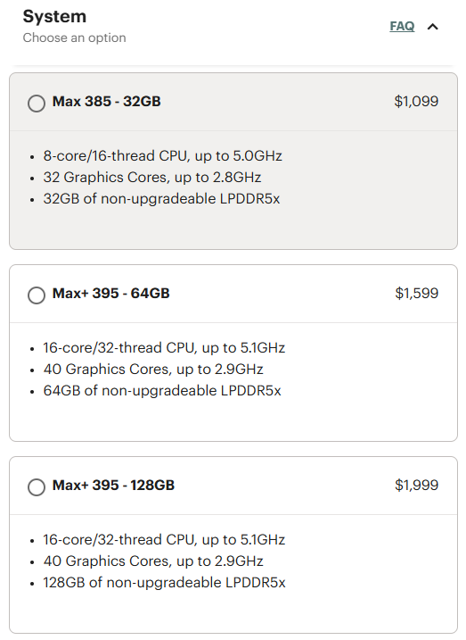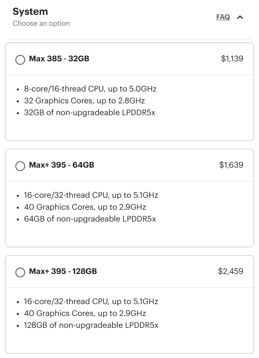 Het topmodel werd extra hard getroffen door de prijsstijging omdat hiervoor acht 128-Gbit chips nodig zijn, waarvan de kosten sterk zijn gestegen. De 128 GB configuratie wordt nu verkocht voor $2.459, wat een sprong van $460 betekent. Hoewel de hogere prijs deze versie minder aantrekkelijk kan maken voor AI-ontwikkelaars, blijft de Framework Desktop een sterke concurrent voor mini-pc's met vergelijkbare specificaties, zoals de GMKtec Evo-X2 met dezelfde processor en 128 GB RAM(ongeveer $2.300 op Amazon).