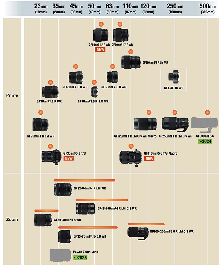 Als eerste werd de GF55mmF1.7 R WR aangekondigd, een portretobjectief dat speciaal is ontworpen om een perfect bokeh te creëren en dat volgens Fujifilm ook geweldig is voor straatfotografie. Met een diafragma van f/1.7 is het een van de twee helderste GF objectieven (samen met de GF80mmF1.7 R WR). Ook de AF-motor is opnieuw ontworpen en is nu soepeler en sneller. Met een full-frame equivalente brandpuntsafstand van 44 mm komt de beeldhoek heel dicht bij die van het menselijk oog, waardoor foto's een natuurlijke uitstraling krijgen. Deze lens is geprijsd voor US$2299.