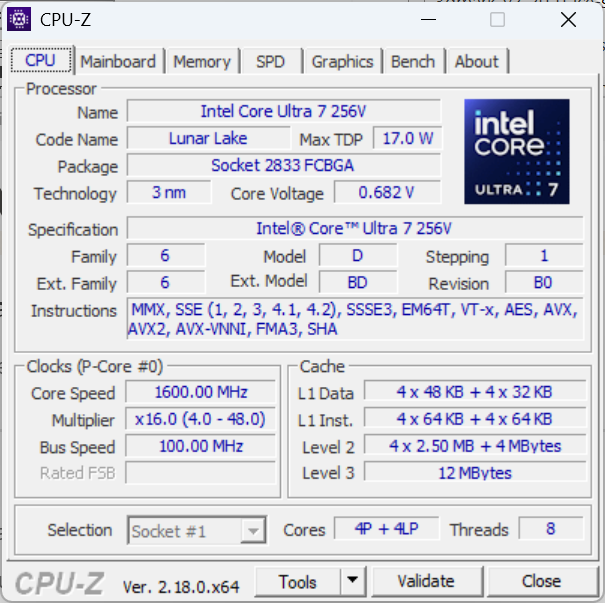 | Gemiddeld Intel Core Ultra 7 256V (275 - 290, n=6) | |