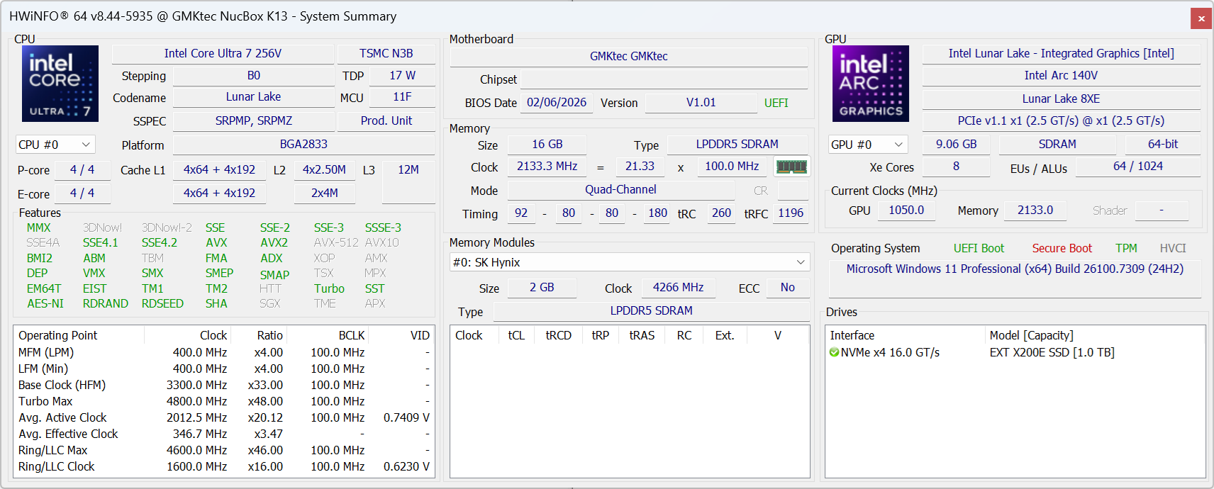 | GMK NucBox K13 Intel Core Ultra 7 256V ⎘ Intel Arc Graphics 140V ⎘ 16 GB Geheugen | Catalogusprijs: 670 USD | 506 g | 36.6 mm | x | |