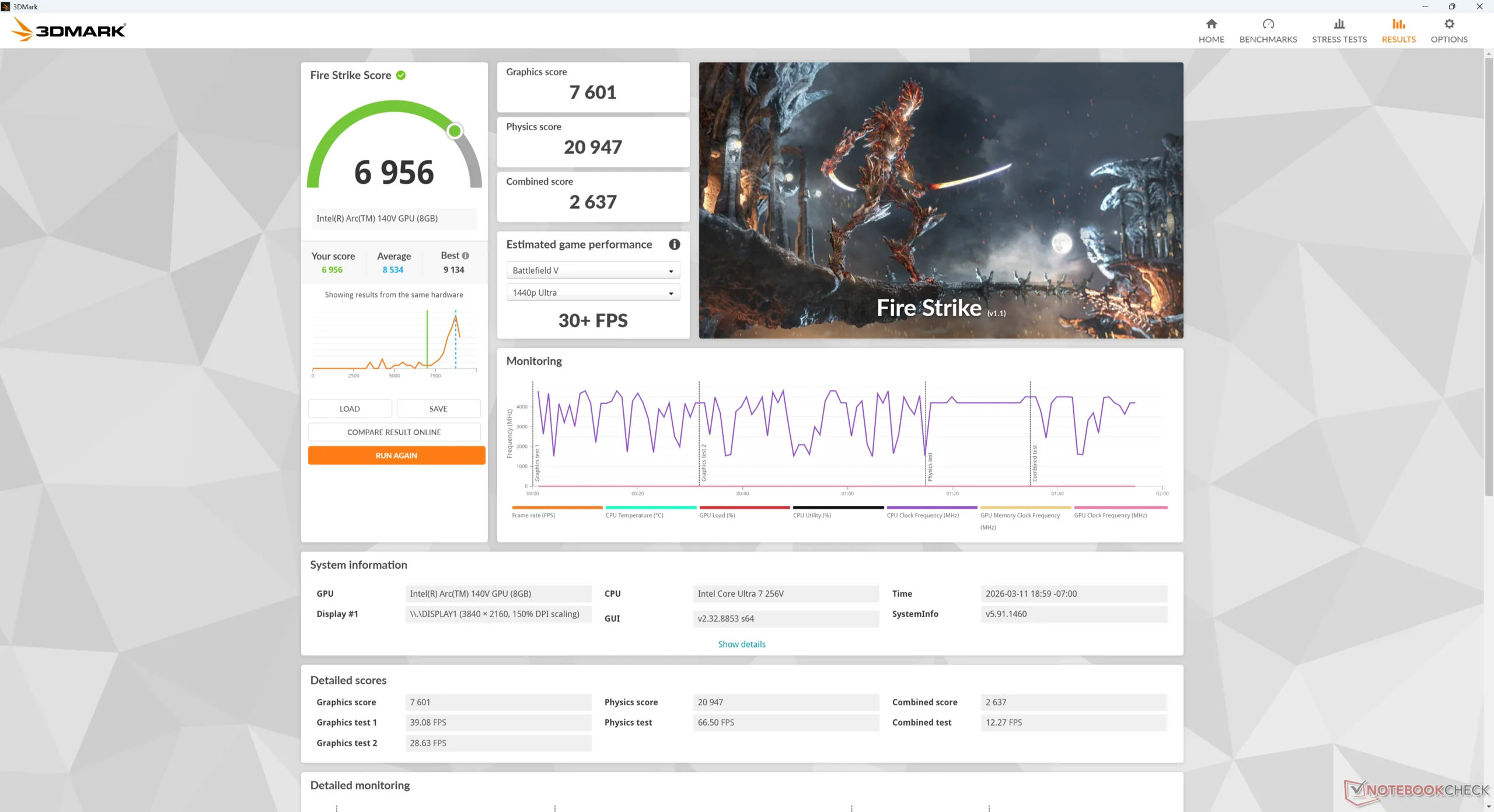 | 3DMark Fire Strike Score | 6956 punten | |