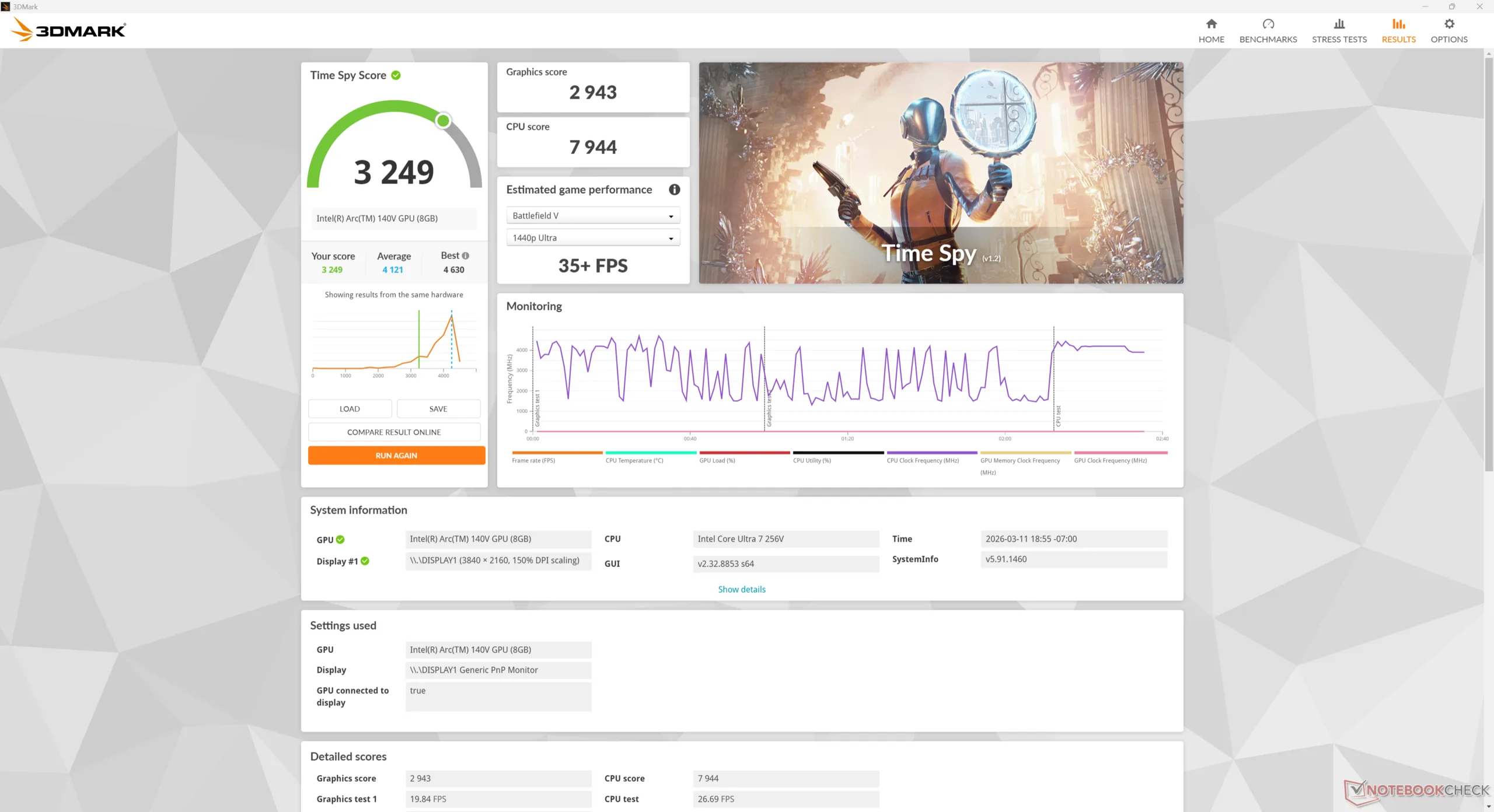 | 3DMark Time Spy Score | 3249 punten | |