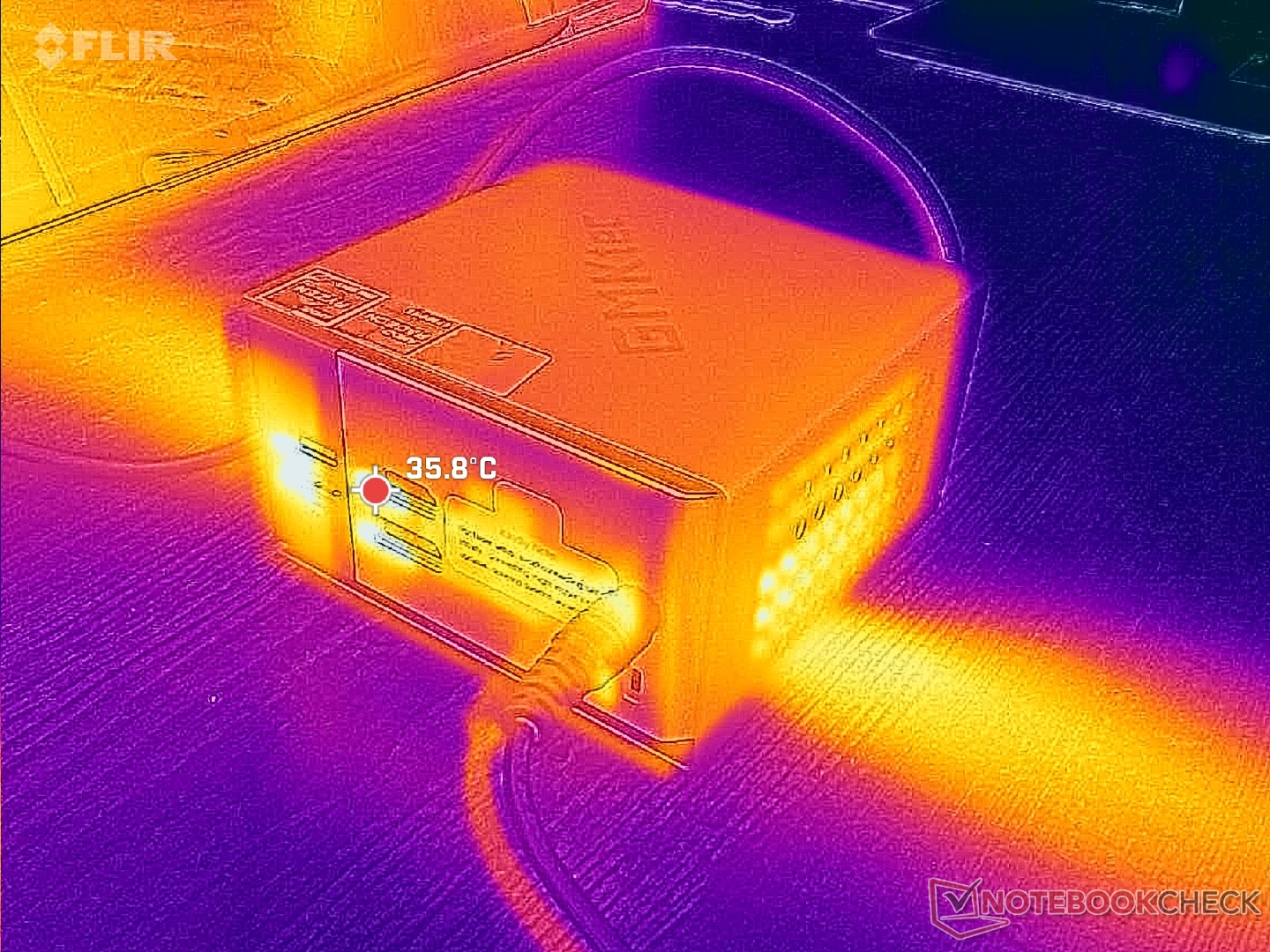(+) Bij onbelast gebruik bedraagt de gemiddelde temperatuur voor de bovenzijde 23.2 °C / 74 F, vergeleken met het apparaatgemiddelde van 32.2 °C / 90 F.