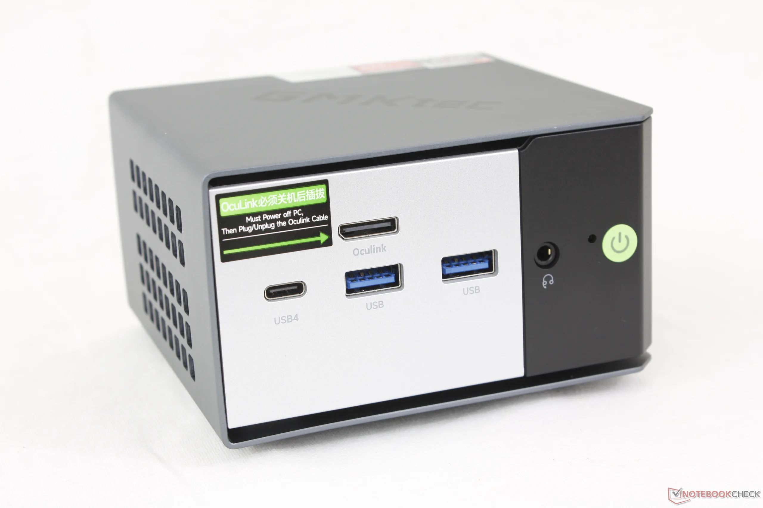 De behuizing is identiek aan die van de EVO-X1 van vorig jaar, die nog steeds een van de kleinste mini PC's in het assortiment van GMKtec is. De poortopties zijn niet veranderd, inclusief de o zo belangrijke Oculink-poort om het model te onderscheiden van de meeste concurrerende mini PC's.
