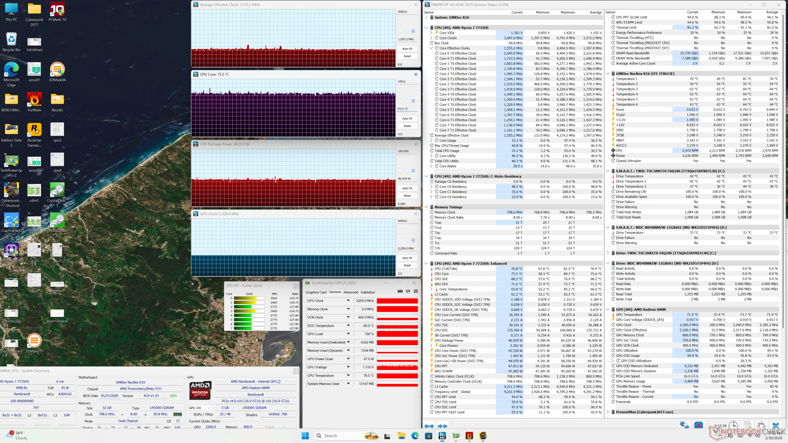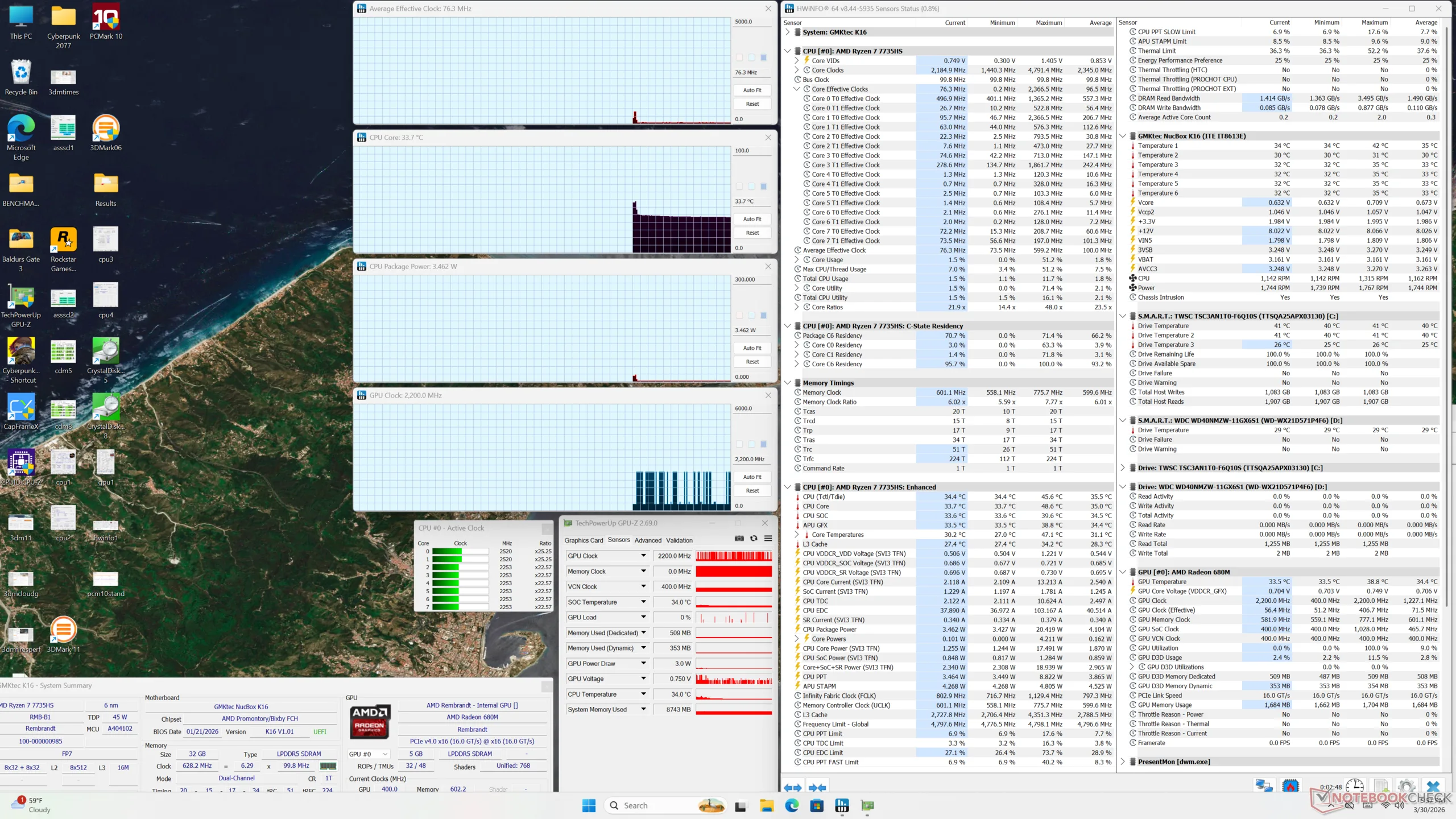 Diezelfde Zen 3+ processor is ook verantwoordelijk voor veel nadelen aan het systeem. De verouderde CPU toont zijn beperkingen bij het analyseren van het stroomverbruik, want de prestaties-per-watt zijn lang niet zo hoog als sommige van de nieuwste alternatieven van Intel, waaronder GMK's eigen NucBox K13. De grafische prestaties zijn ook langzamer dan gemiddeld, zelfs voor een geïntegreerde oplossing.