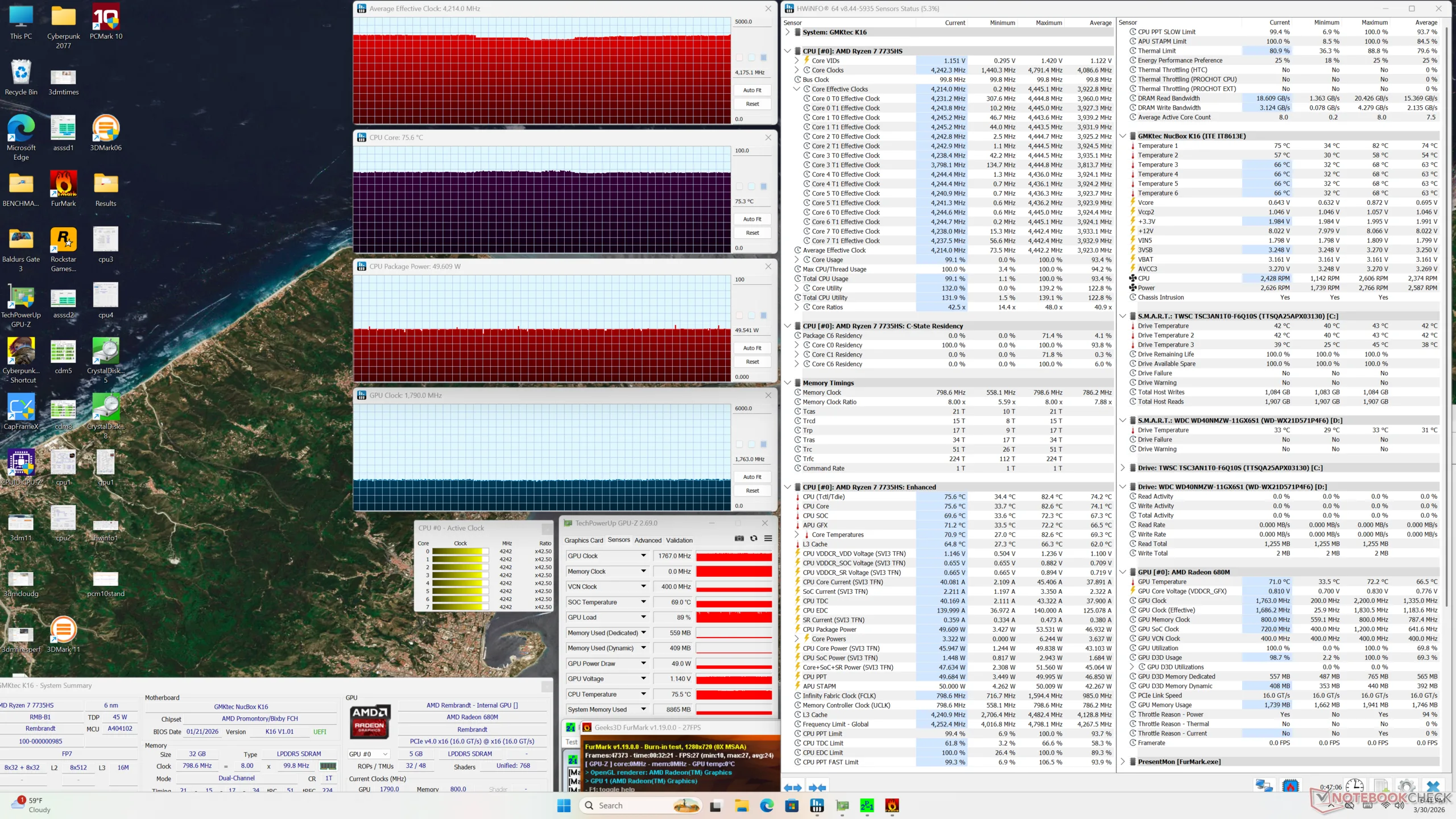 | Prime95 + FurMark Stress | 4.2 | 1763 | 75 |