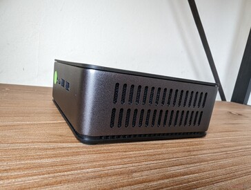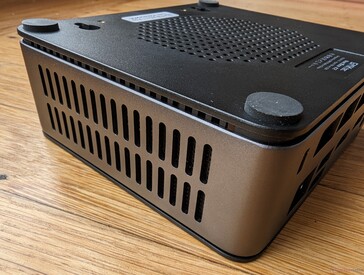 De NucBox K2 is merkbaar lichter dan veel andere mini PC's van vergelijkbare grootte, waaronder de Intel NUC 13 Pro en Geekom Mini IT11. Het nadeel is echter dat de K2 meer plastic gebruikt op de boven- en onderkant, terwijl alleen de zijkanten en randen van metaal zijn. Het volledig matte ontwerp is zeker subtieler dan mini PC's zoals de Beelink SER7 waar het glimmende chroom uiterlijk de aandacht trekt. De stevigheid van het chassis is desondanks erg goed en er waren geen problemen met de bouwkwaliteit van onze specifieke unit.