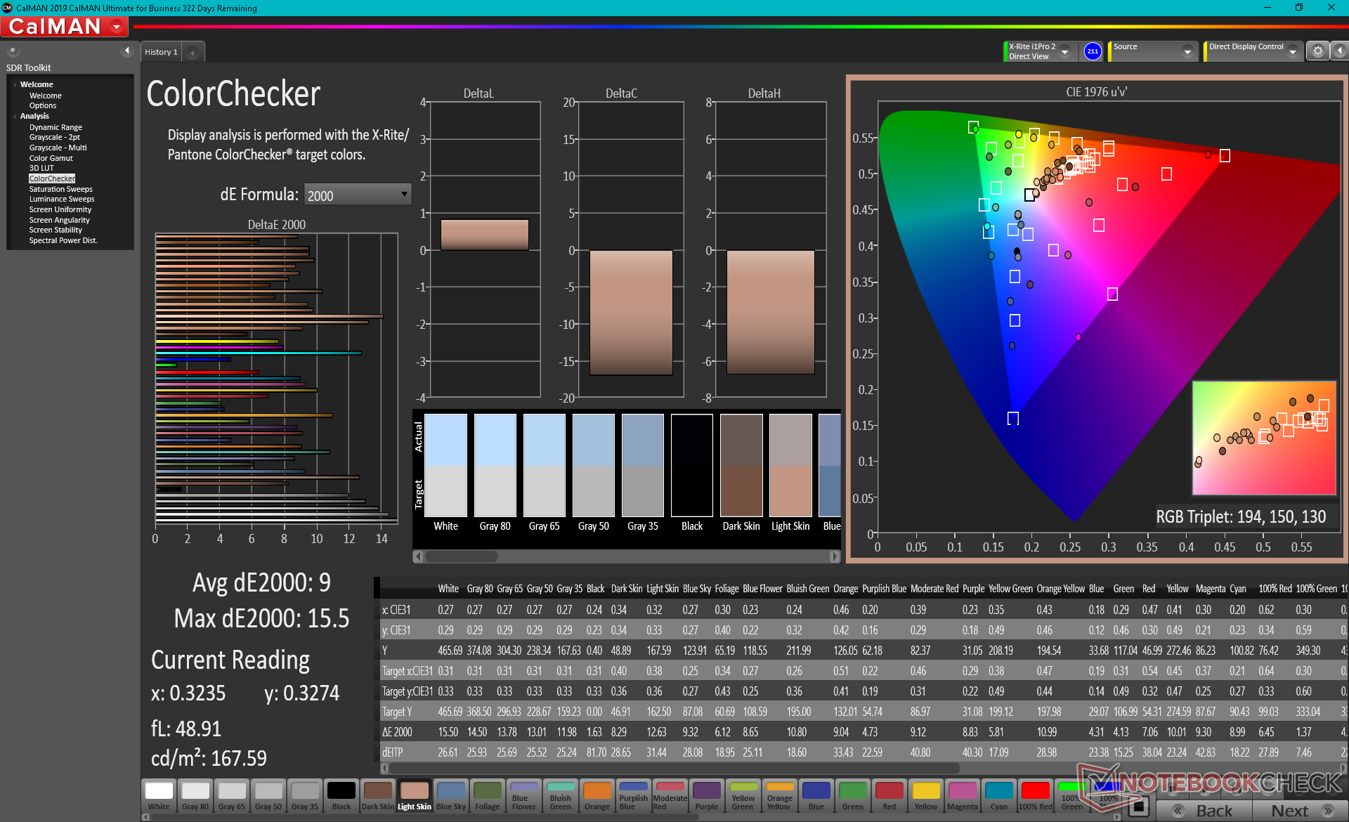 ΔE ColorChecker Calman: 9 | ∀{0.5-29.43 Ø4.78}