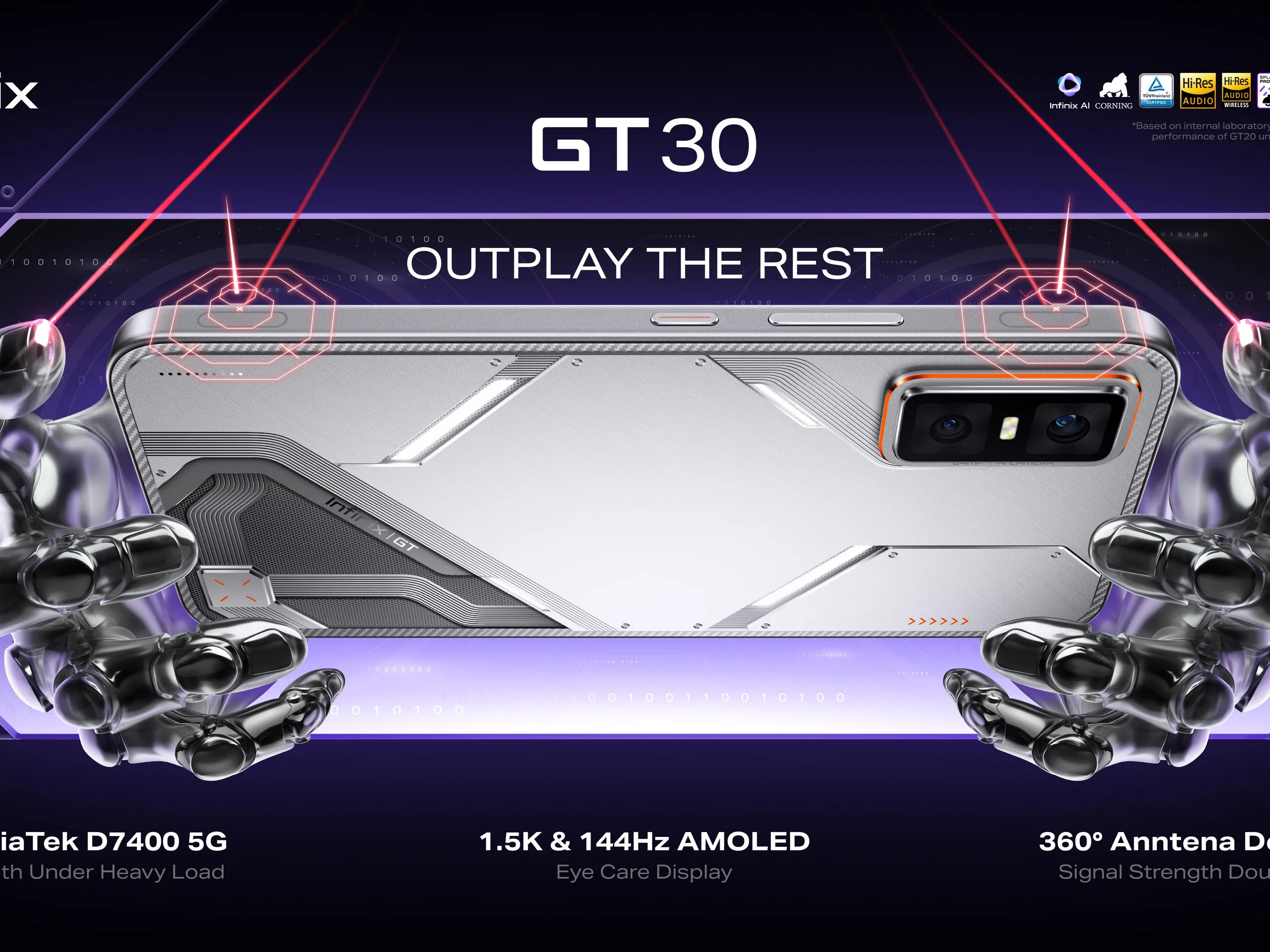 De rest van de hoogtepunten van de GT 30 zijn een vingerafdruksensor in het scherm, dubbele luidsprekers met Hi-Res audio, IP64-bescherming en WiFi 6. Voor meer details kunt u terecht op de officiële website van Infinix officiële website.