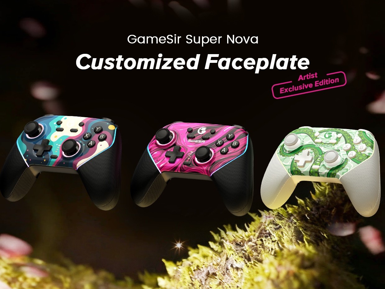 GameSir verkoopt negen faceplates voor de Super Nova gamecontroller(momenteel verkrijgbaar op Amazon voor $47,49). De kleuren, die $9,99 per stuk kosten, zijn Mystic Green, Plum Rose, Elite White, Light Green en Vibrant Orange. GameSir heeft nu drie limited edition faceplates aangekondigd die door kunstenaars zijn gemaakt.