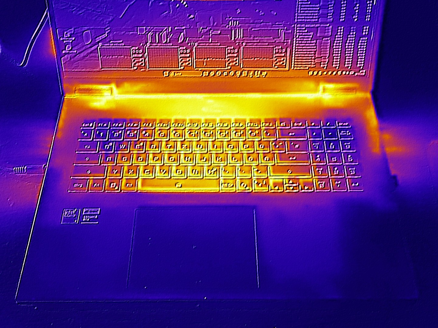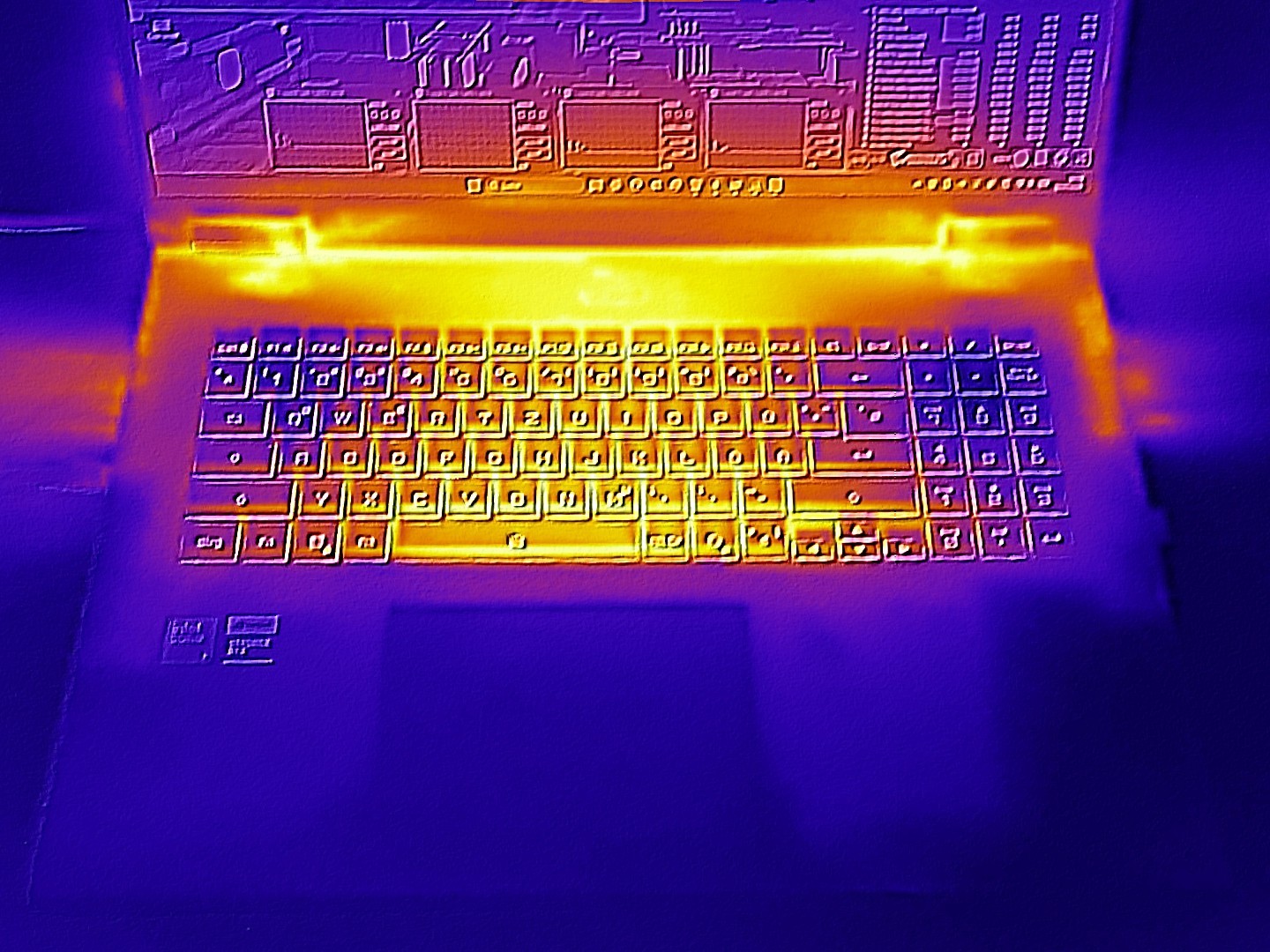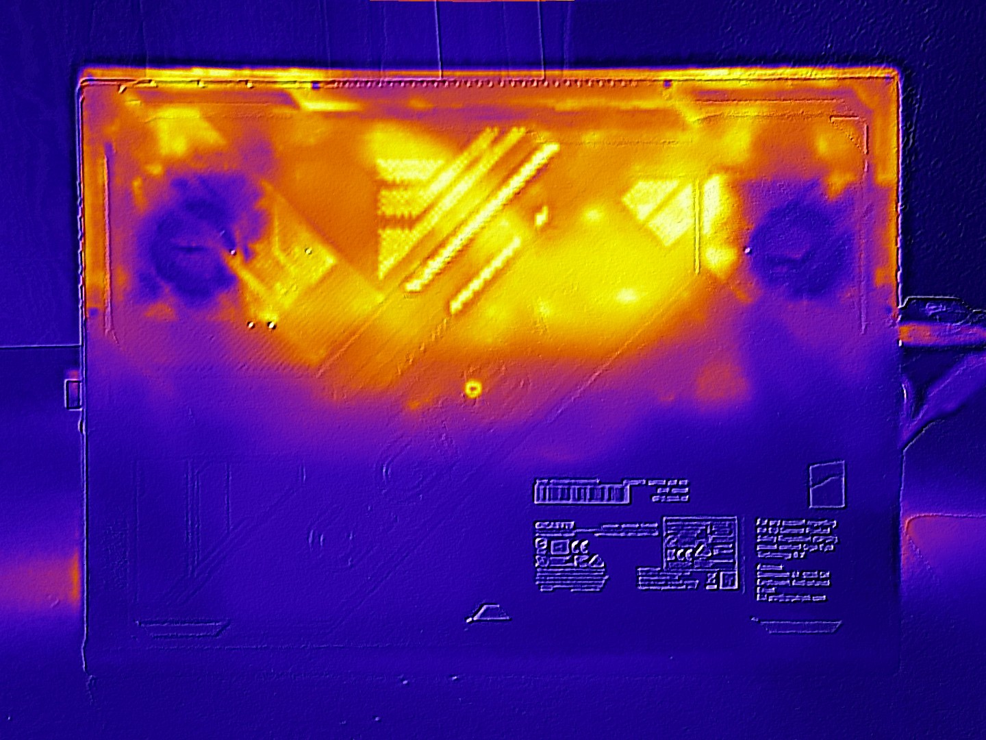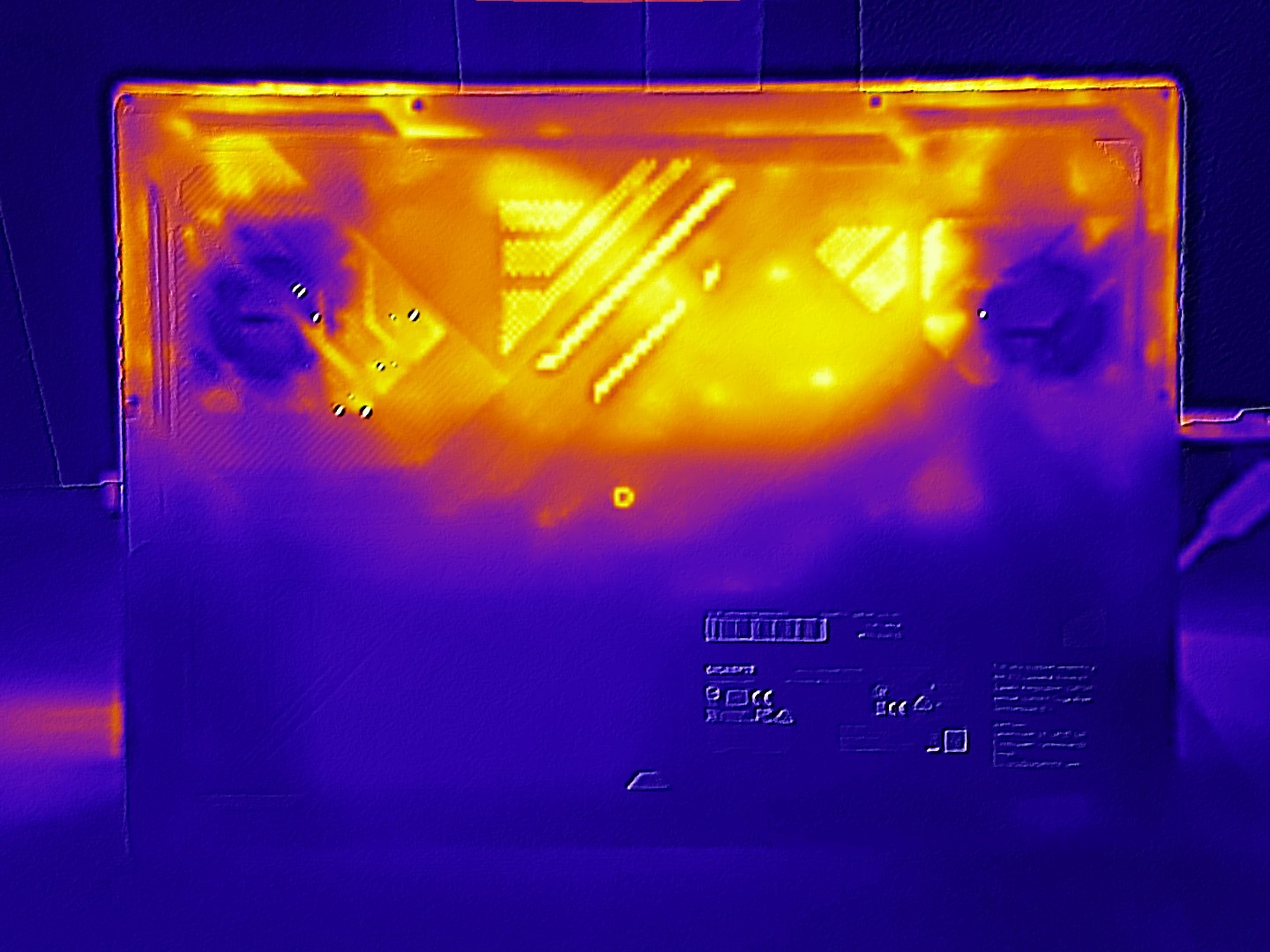 De thermische waarden liggen binnen het verwachte bereik. Een maximum van ongeveer 118°F aan de bovenkant en ~120°F aan de onderkant van het chassis zijn typisch voor een apparaat in deze prestatieklasse. In ruststand blijft het grootste deel van het chassis onder ongeveer 86°F, dus het voelt nog steeds erg comfortabel aan.