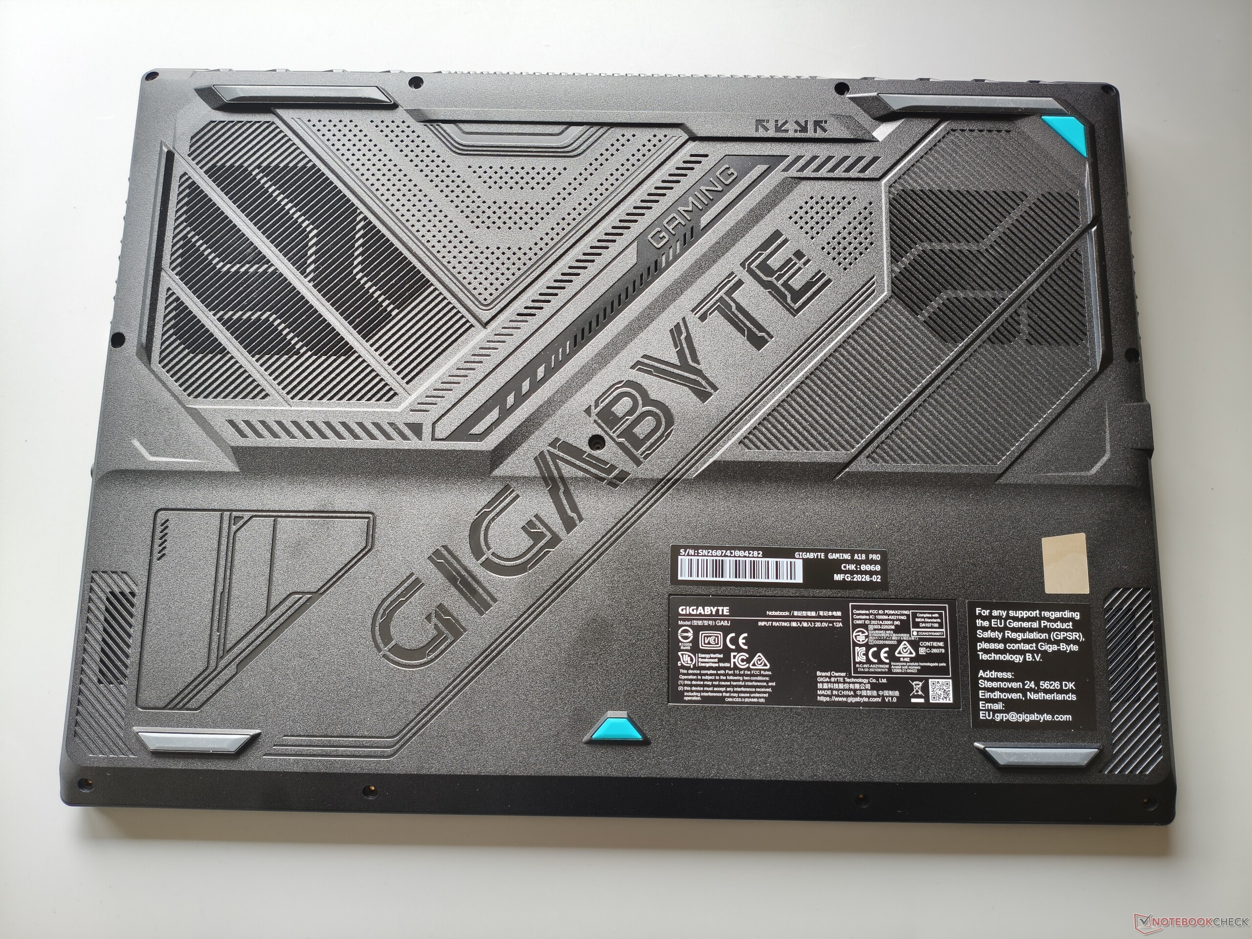 Gigabyte heeft gekozen voor een vrij strak ontwerp met de Gaming A18 Pro, dat, afgezien van de gedurfd ontworpen onderkant van het chassis, geen grote experimenten bevat. De donkergrijze oppervlakken voelen op de meeste plaatsen solide en stabiel aan, en de scharnieren, waarmee het scherm tot 180° kan worden geopend, voeren hun functie grotendeels onopvallend uit. Hetzelfde geldt voor de bouwkwaliteit, die weinig te wensen overlaat.