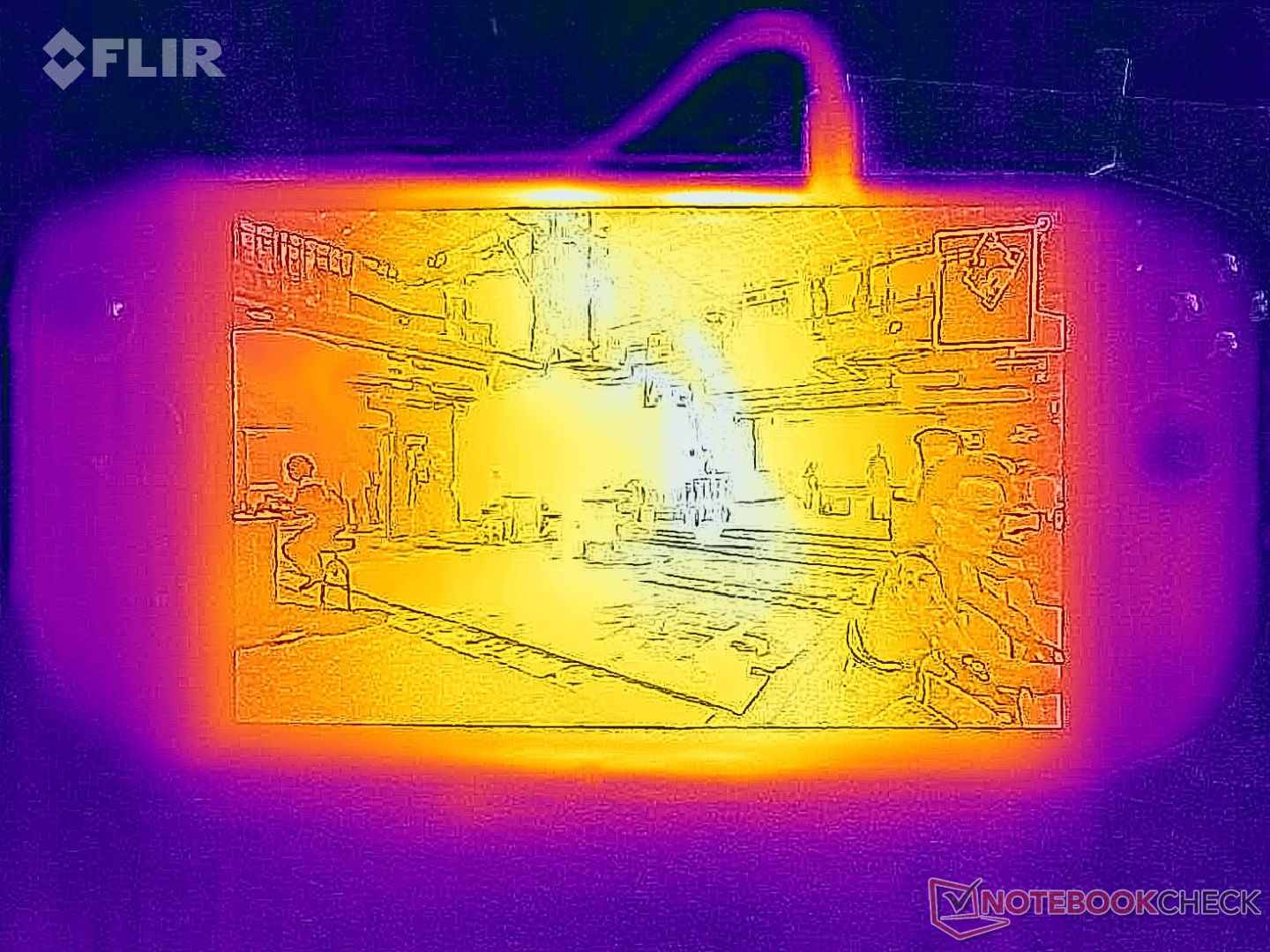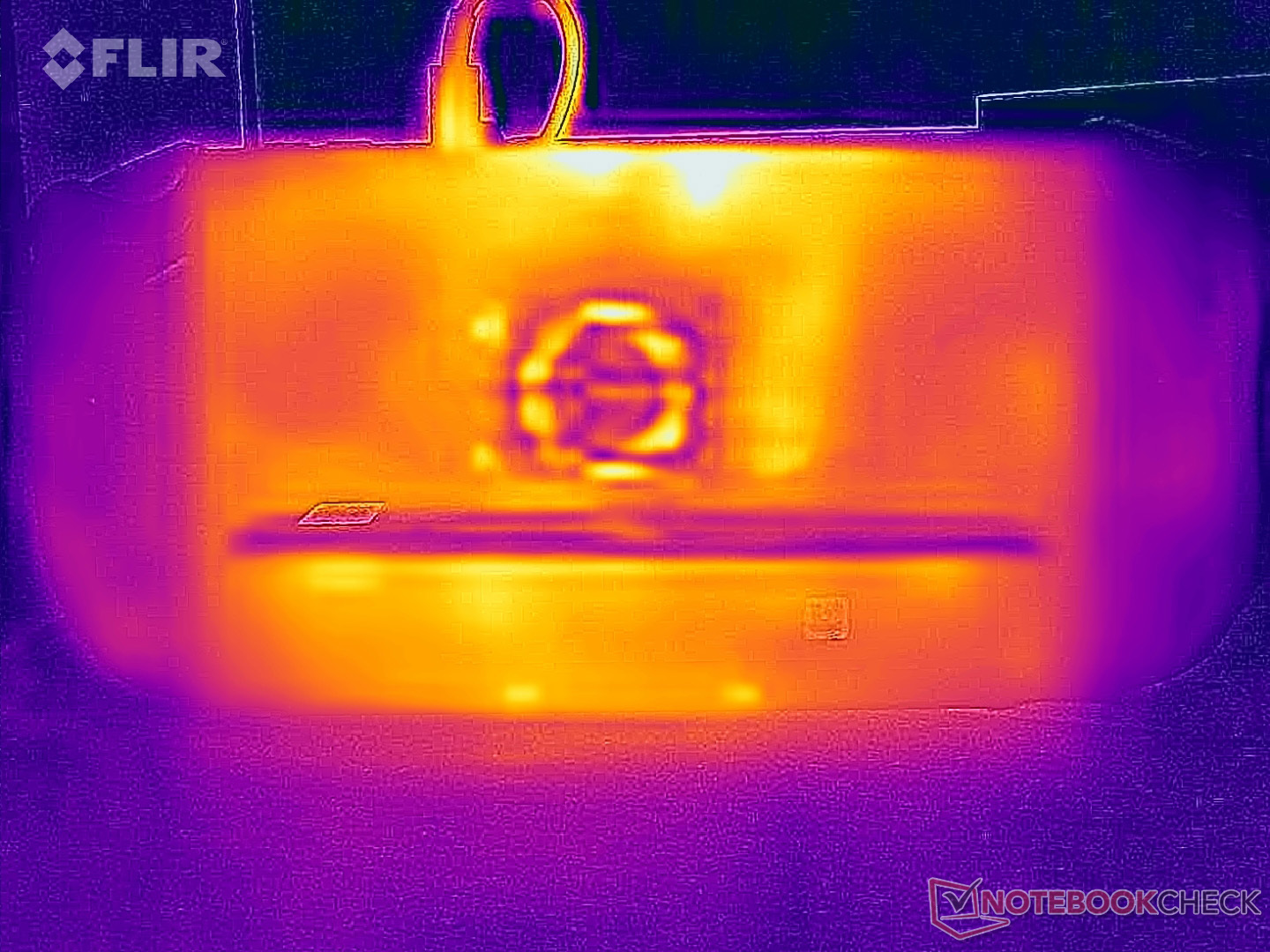 (±) Bij onbelast gebruik bedraagt de gemiddelde temperatuur voor de bovenzijde 35.1 °C / 95 F, vergeleken met het apparaatgemiddelde van 32.8 °C / 91 F.