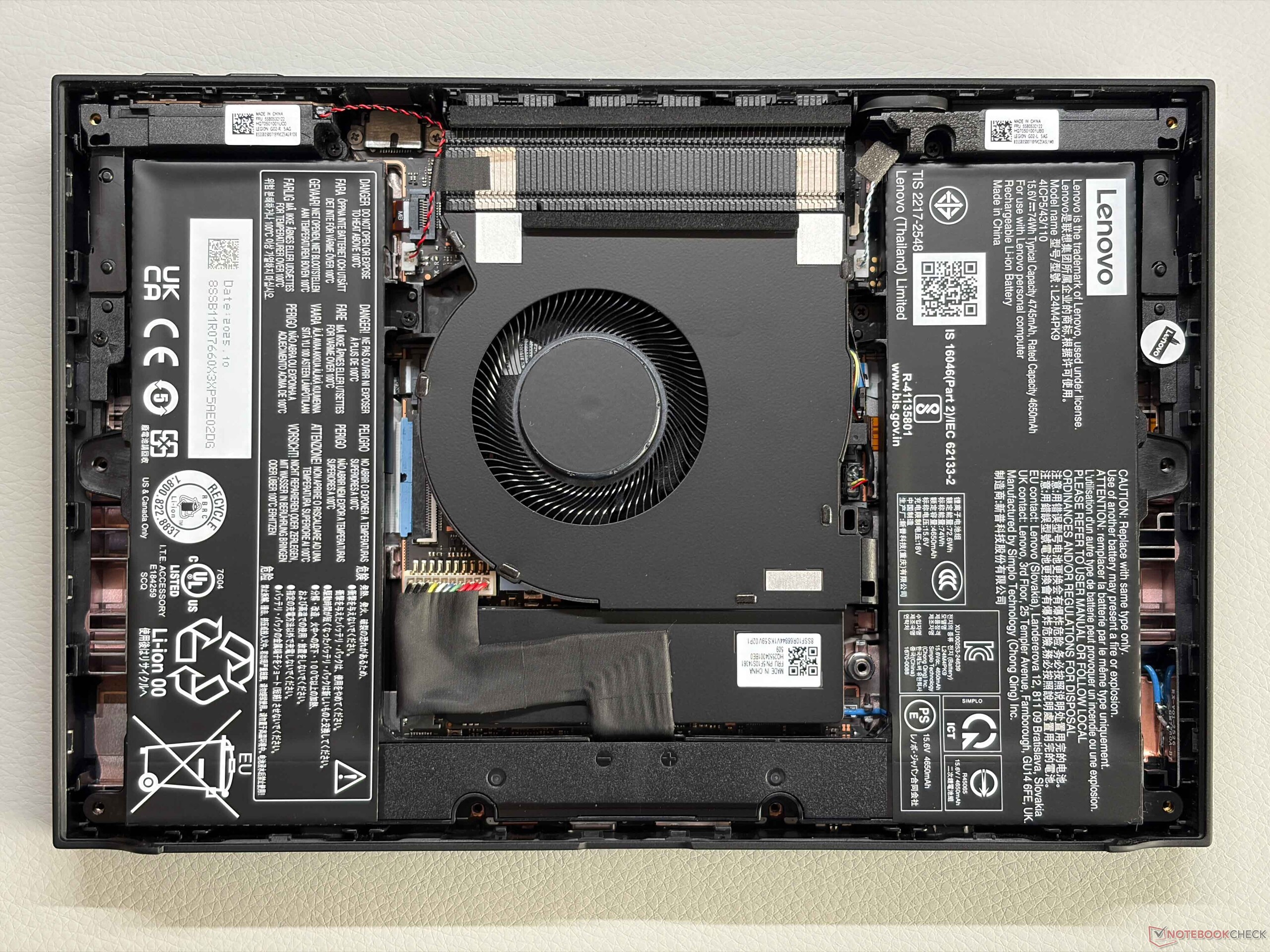 Intern is de lay-out ook opnieuw ontworpen. De batterijen zitten nu aan beide kanten, met een enkele ventilator in het midden. De M.2 2280 SSD zit eronder en kan worden vervangen, hoewel er eerst een kabelverbinding moet worden losgekoppeld. Ondanks de hoge prijs biedt het apparaat nog steeds geen ondersteuning voor Wi-Fi 7.