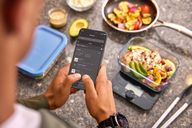 De Garmin functie voor het bijhouden van voeding is ontworpen om het gemakkelijk te maken om uw dieet bij te houden. Wanneer u een voedingsmiddel consumeert, kunt u dit eenvoudigweg scannen met de Garmin Connect smartphone app, ofwel door de streepjescode te scannen of door het gerecht zelf voor de camera te houden, die het met behulp van AI herkent.