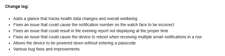 Beta-versies 15.08 en 15.10 voegen ook de mogelijkheid toe voor gebruikers om hun vivoactive 6 smartwatch uit te schakelen zonder de wachtwoordcode van het apparaat in te voeren. Er zijn bugfixes voor problemen met het onjuiste meldingsnummer dat op de wijzerplaat wordt weergegeven en de onjuiste tijd die in het Avondrapport wordt weergegeven. Bovendien heeft Garmin een probleem opgelost waardoor de wearable opnieuw opstartte na het ontvangen van een reeks slimme meldingen. Bovendien zou bètaversie 15.08 gebruikers versie 3.00 van GCM Translations bieden.