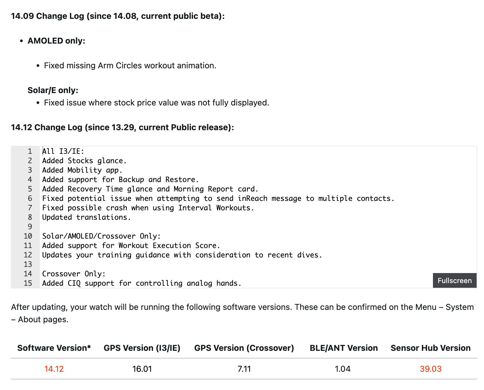 In plaats daarvan verwijst het bedrijf naar dezelfde veranderingen als in Beta Versie 14.09. Desalniettemin blijkt uit de vele rapporten op het openbare bugrapportagekanaal van Garmin dat v14.12 last heeft van veel van dezelfde bugs als oudere firmware.